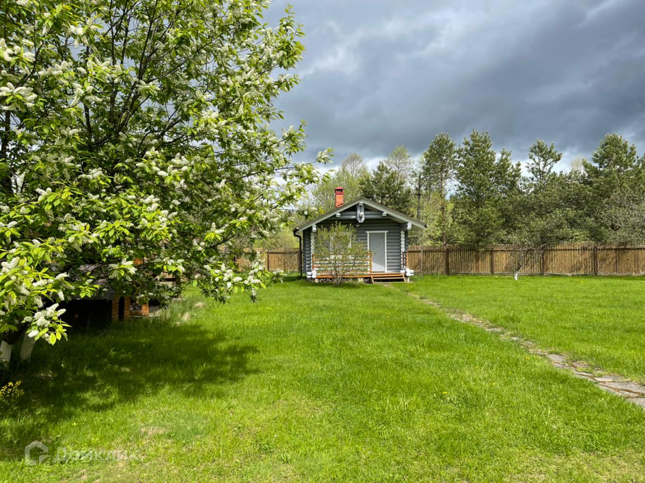 На участке площадью 21 сотка располагается дровяная баня (30 м2), гараж на два автомобиля (35 кв.м.) ангар для катера (72 м2). Участок со всех сторон обнесен забором. Территория очень ухоженная. Назначение земли ИЖС.