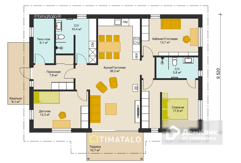 Утепленный финский фундамент. Стены наружные, стены несущие, перегородки;– панели стен собираются из сухой строганной доски 45x195 мм, 45х145 мм, 45х95 мм соответственно. Стропильная система;– фермы заводского изготовления на металлозубчатых пластинах. Высота потолков;– 2,7 м. Утепление стен;– 265 мм.;Утепление потолка;– 400 мм.;Кровля;– фальц-защелка Rauma® (сталь 0,52 мм, матовый полиэстер, цинк 225 г/м2).;Кровельная безопасность;– Saimaa®.;Водосточная система;– Aquasystem®.;Утеплитель;–;PAROC eXtra.;Фасад, подшивная и лобовая доска, наличники окон и дверей;–; покрашенная в заводских условиях фасадная доска с тонкопиленной поверхностью. Размер фасадной доски - 20х120 мм.;Дверь входная;– JELD-WEN BASIC B0010.;Портал на террасу;– Roto Patio. Окна;– REHAU DELIGHT-Design.;Отделка террасы;– доска террасная импрегнированная 28х120 мм.;Отделка цоколя;– Baumit;MosaikTop. Вентиляция;– приточно-вытяжная система вентиляции с рекуперацией тепла Vallox®