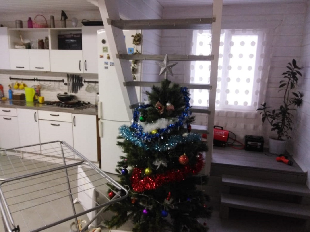 На первом этаже кухня 32м, комната 16м, холл 3 м, санузел. На втором этаже  2 спальни по 16м, холл  и одна  12м. Вся техника и мебель при необходимости остается в доме. Участок ровный. Ухоженный. Въезд и дорожки уложены гравием 15 кубов. На участке бытовка возле въезда со светом. Откатные ворота. Посажаны туи 16 шт.
