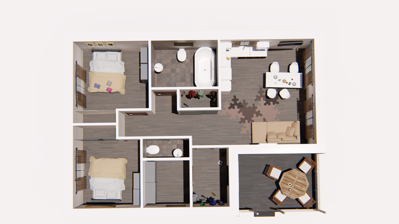 ️ Планировка дома позволяет с комфортом разместиться всем членам семьи: две спальни с панорамными окнами, большая кухня-гостиная с панорамными окнами так и манит для приготовления разнообразных блюд и приема гостей, два санузла делают комфортным проживание в одном доме, также реализована прихожая, котельная, гардеробная