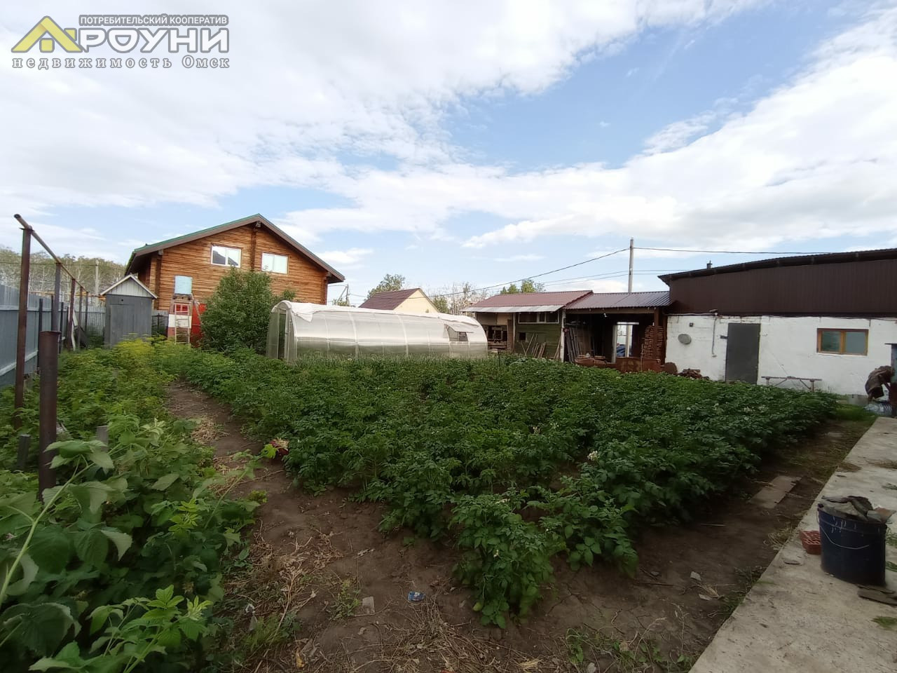 На участке теплица, баня и хоз. Постройки.