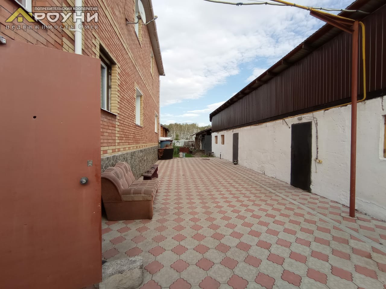 Двор выложен плиткой.