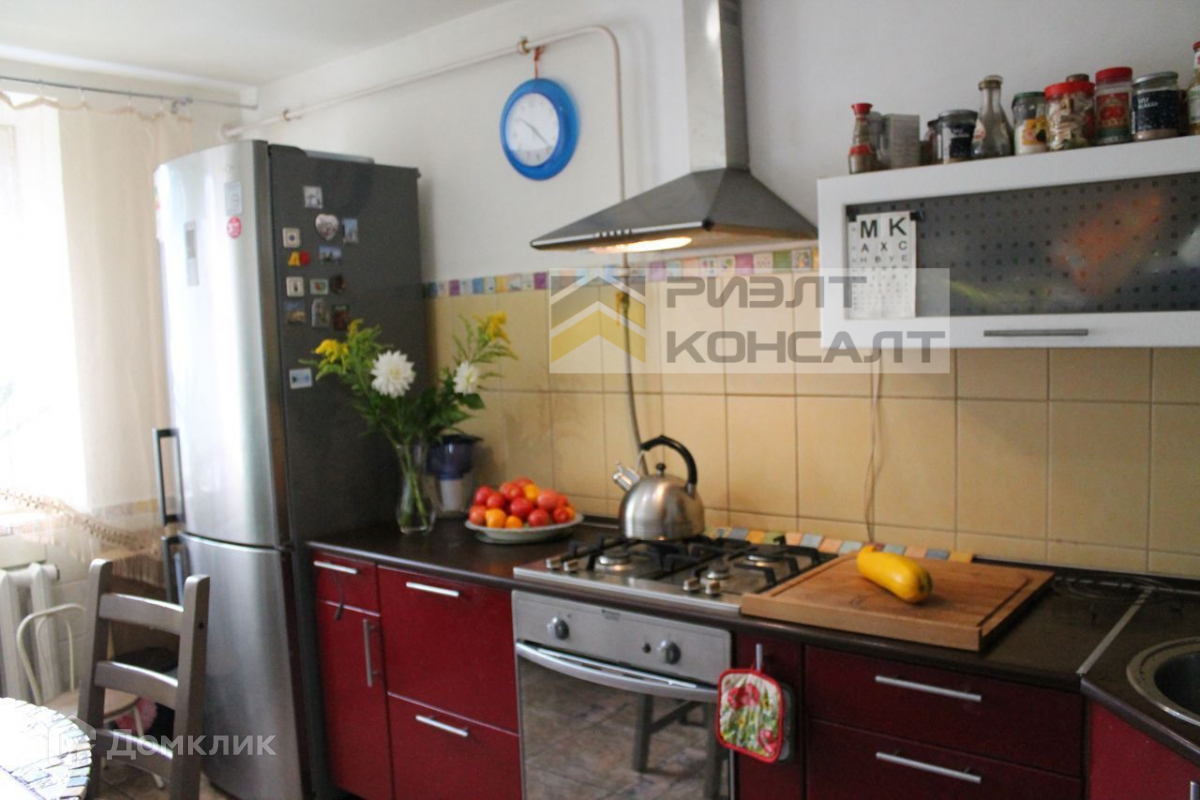 Новому собственнику остается: кухонный гарнитур, шкафы и стеллажи для хранения, фитобочка.