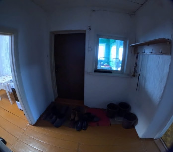 Внутри дома стены и потолки - побелка. Полы деревянные, окрашенные. Дом очень тёплый.