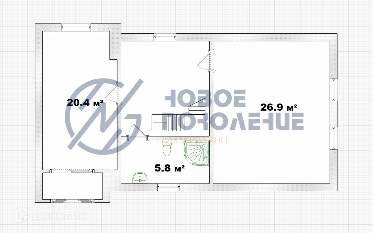 Плaнировка. 1 этаж : прихожая, большая гостиная, спальня, куxня, совмещенный caн.узел.