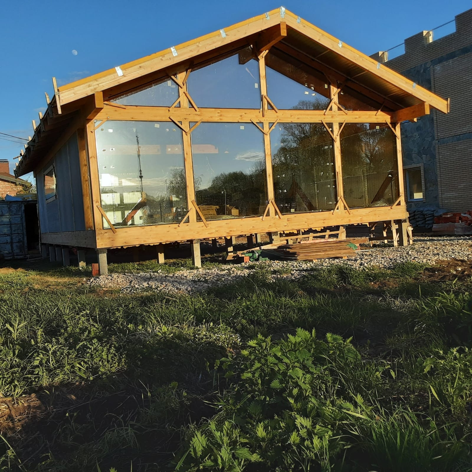 Требуется внутренняя и частично внешняя отделка. Построен по новейшей технологии с утеплителем PIR. Это экологичный, негорючий, не впитывающий влагу  прочный теплоизоляционный материал с коэффициентом теплопроводности от 0,016 Вт/м·К  до 0,021* Вт/м·К (самый низкий среди теплоизоляционных материалов), что позволяет сохранить тепло зимой и прохладу летом. Применяется для теплоизоляции космических кораблей. По этим причинам требуемая толщина PIR-теплоизоляции значительно меньше требуемых толщин всех известных минеральных и пенополистирольных видов изоляции. Это означает, например, что при использовании древесины требуемая толщина – 333 мм, минеральной ваты – 93 мм, а при использовании PIR-плиты – всего 50 мм (см. ссылки внизу). Благодаря своей прочности имеет не только теплоизоляционные, но и конструктивные свойства. Не теряет своих свойств в процессе эксплуатации.