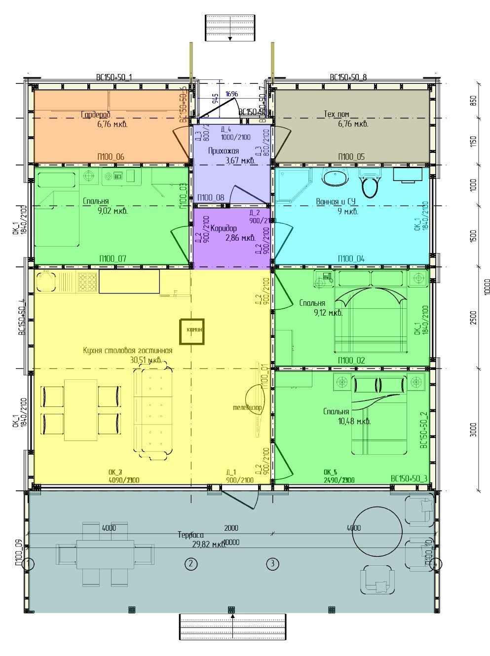 - 3 спальни - 9, 9, 10,5 м