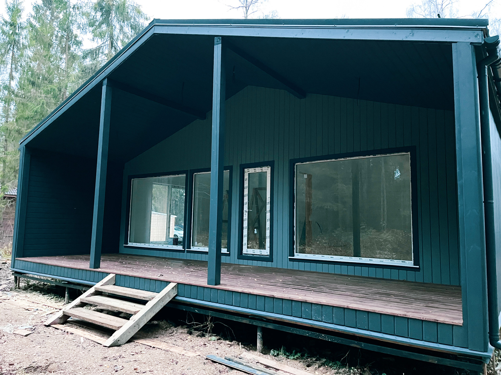 Дом построен из современных, экологически чистых материалов: дерева и стекла, с применением всех строительных норм и рассчитан для постоянного проживания. Фундамент свайный с обвязкой, толщина утепления стен 200мм, чистовая отделка доска, окрашенная Тикуриллой, на полу стяжка с водяным отоплением, пол ламинат. Дом выполнен в скандинавском минимализме с присущем ему стилем и качеством.