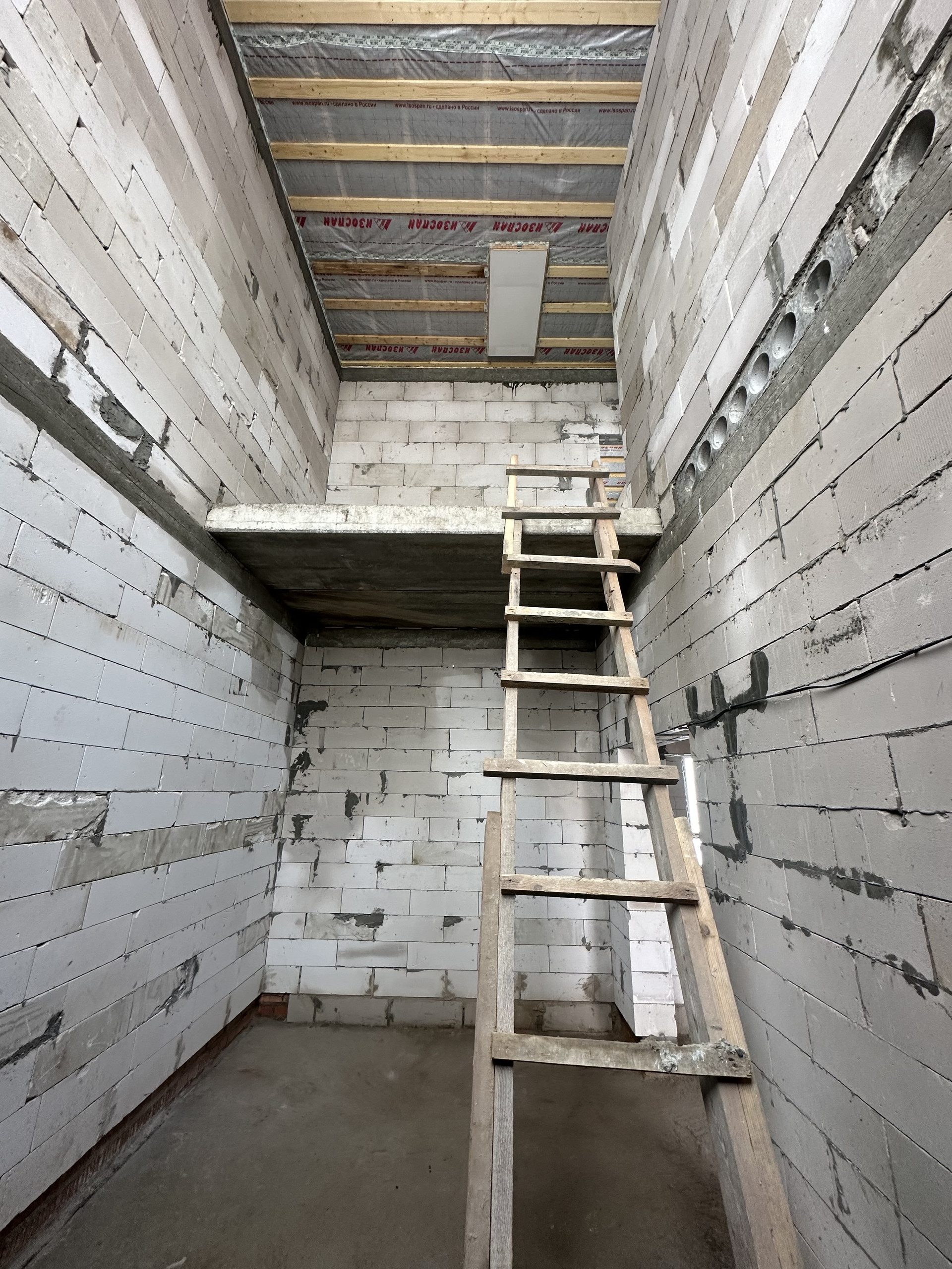 2. Стены подняты блоками фирмы фирмы Бонолит D500 , толщина стен 300мм, армирование каждого третьего ряда, перегородки стен 200 мм и 100 мм, высота каждого этажа 3.20 метров с переходом на каждом этаже армпояс марки М-300