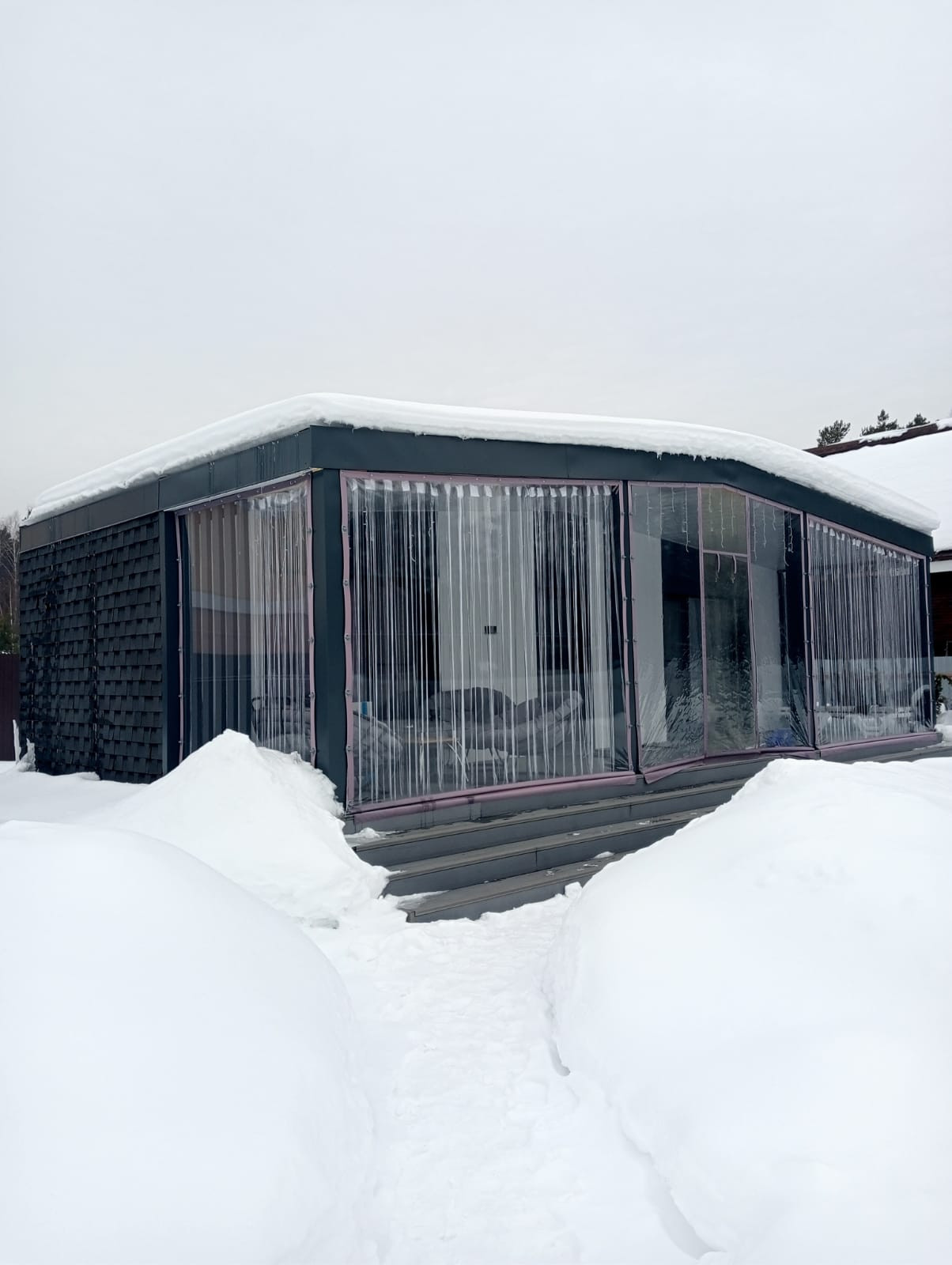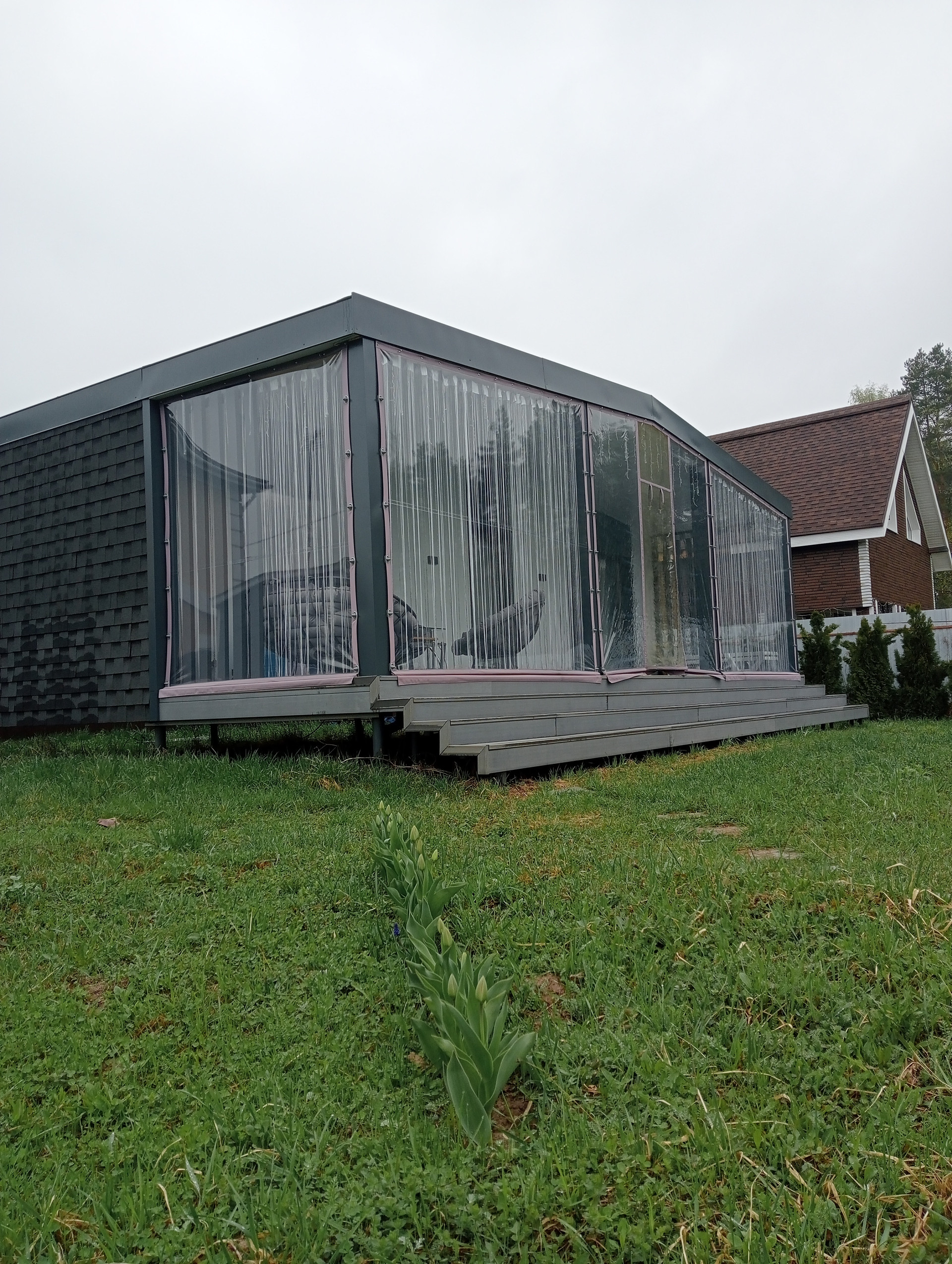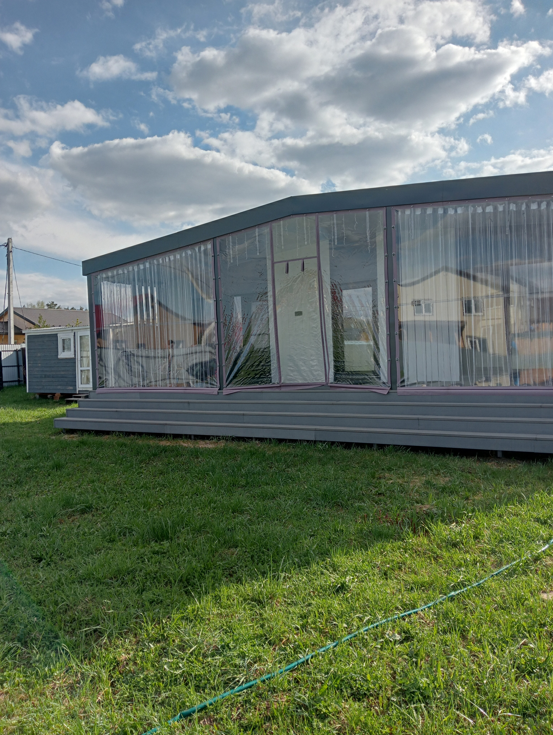 Дом может использоваться для постоянного проживания или для сдачи в посуточную аренду. На участке достаточно места для строительства капитального дома.