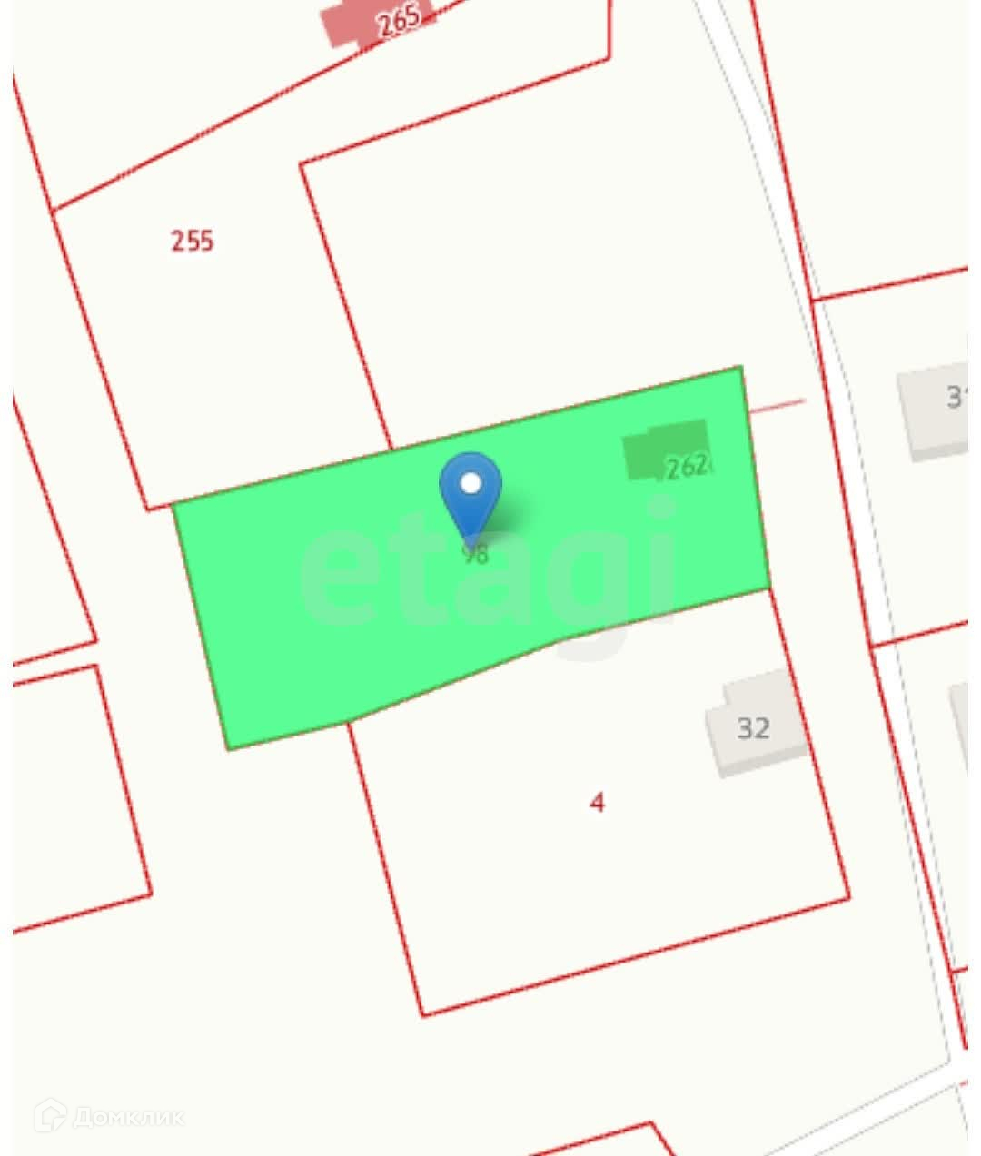 Газ заведен на участок, водопровод в 30 метрах (водонапорная башня, столб с электричеством на участке.