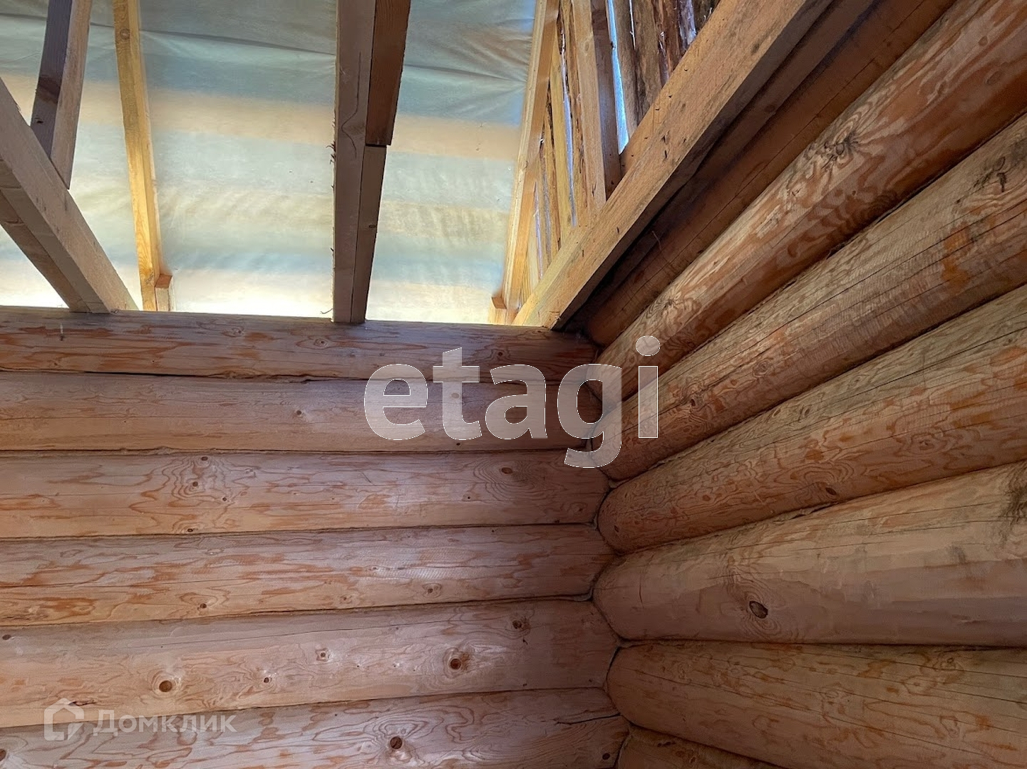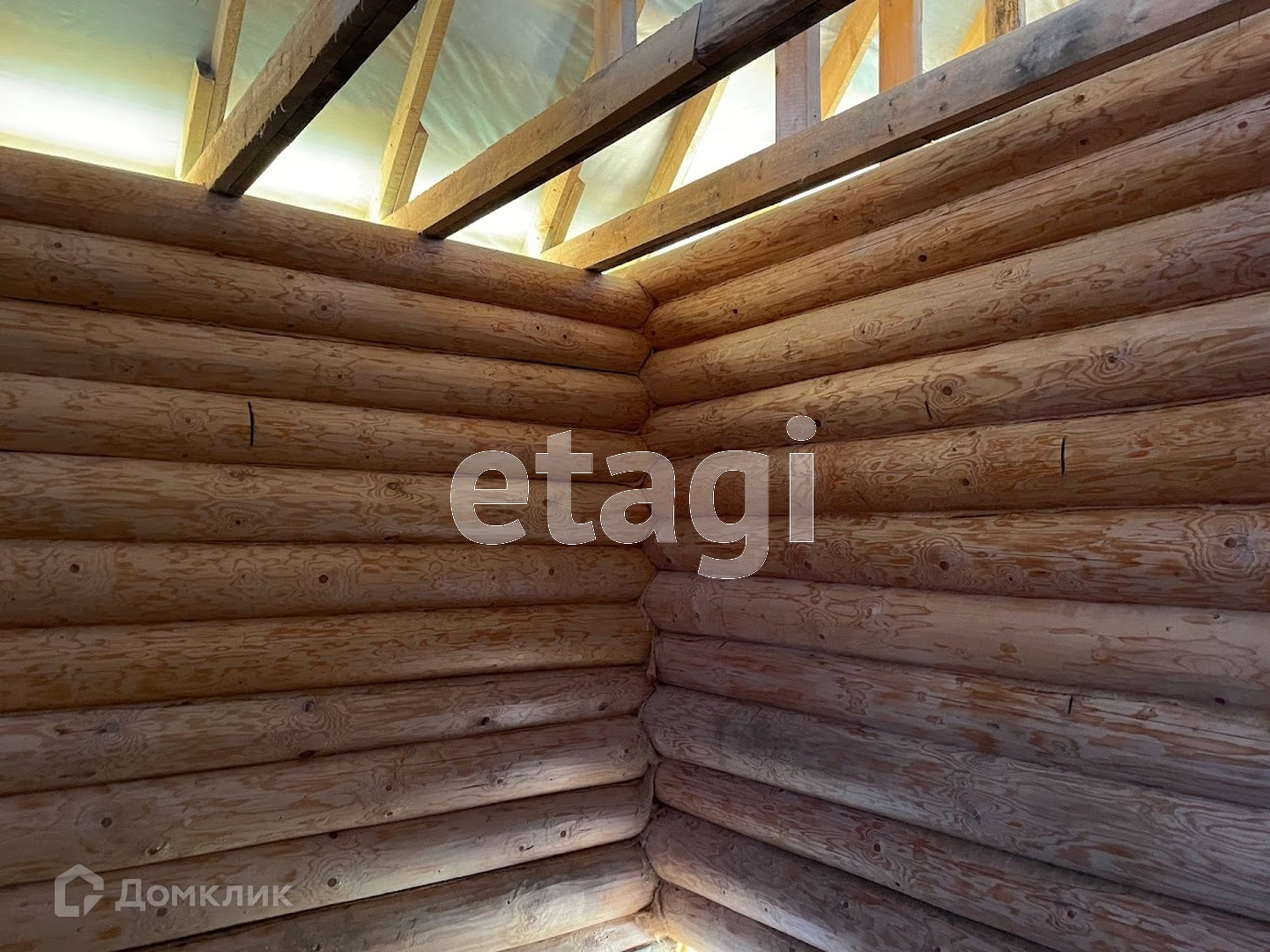 Сруб из тёсанного бревна (ель). Все бревна ровные, пропитанные раствором от плесени и насекомых.