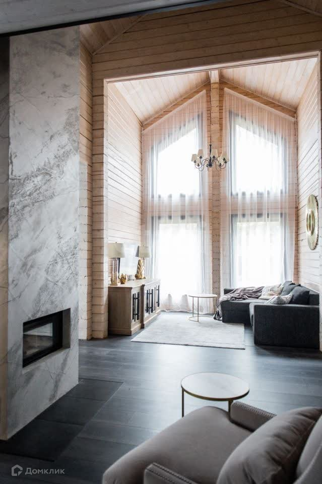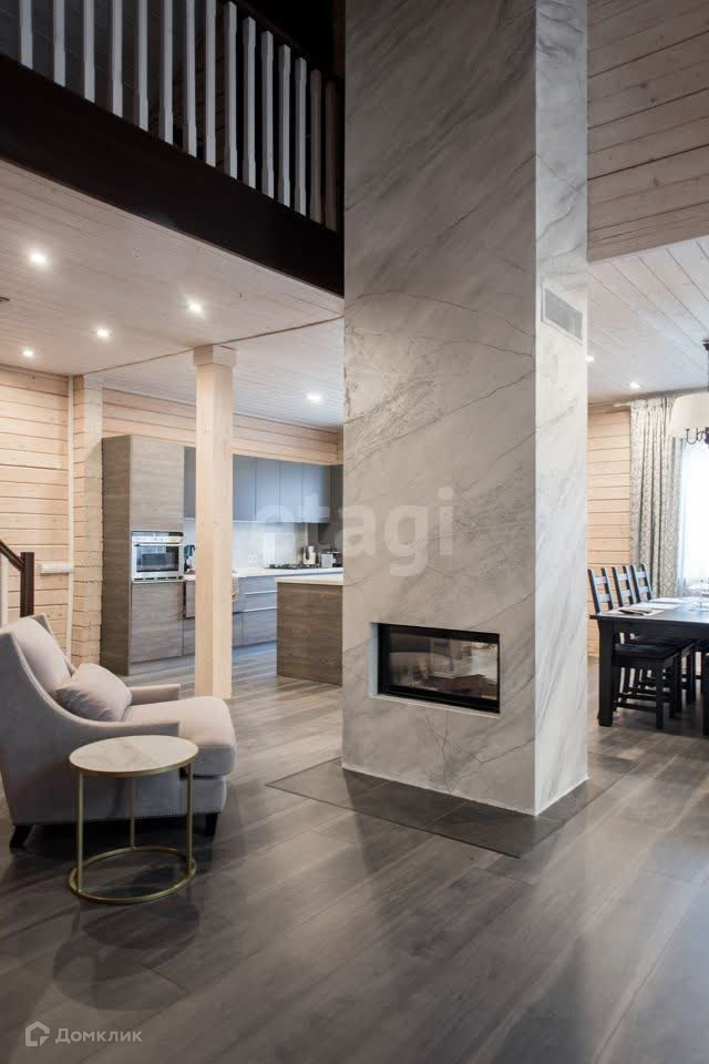 На первом этаже просторная кухня-гостиная общей площадью 62 м.кв., тамбур с гардеробной, с/у, тех.помещение. В центре гостиной двухсторонний камин Аustrоflаmm. Бытовая техника- холодильник, газовая плита, вытяжка, духовка-микроволновка, посудомоечная машина, стиральная машина, бойлер на 150 л. На втором этаже - две спальни по 26 м.кв. (при необходимости одну из спален можно разделить на две).