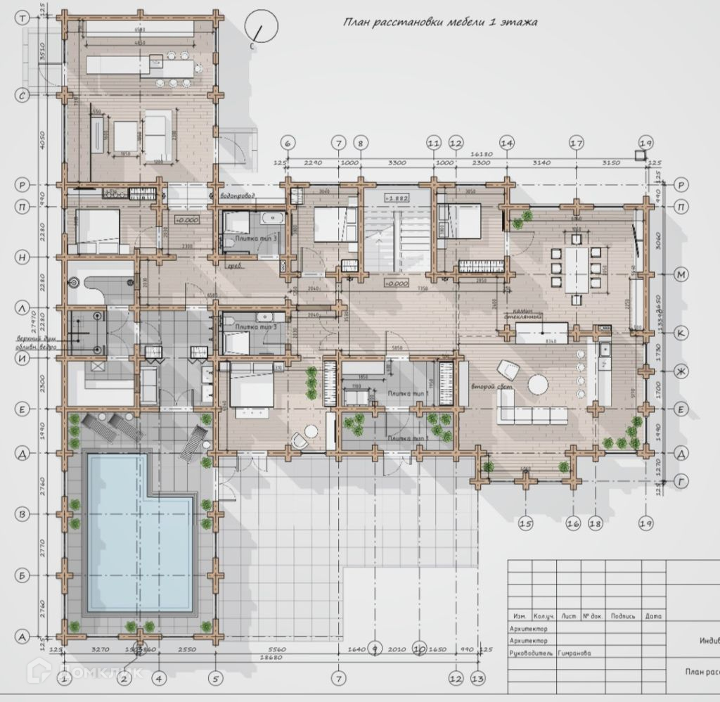 В зоне бассейна выполнены каналы приточки/вытяжки.