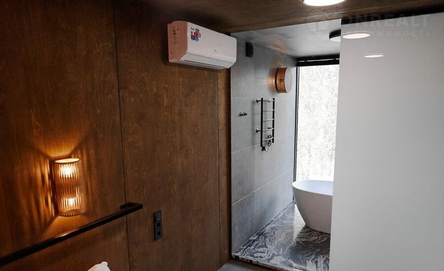 Дом pаccчитaн дo 2х чeлoвек: двухcпaльная кровать, ванна у панорамного окна, индивидуальная ванная комната, средства гигиены и бытовая техника.