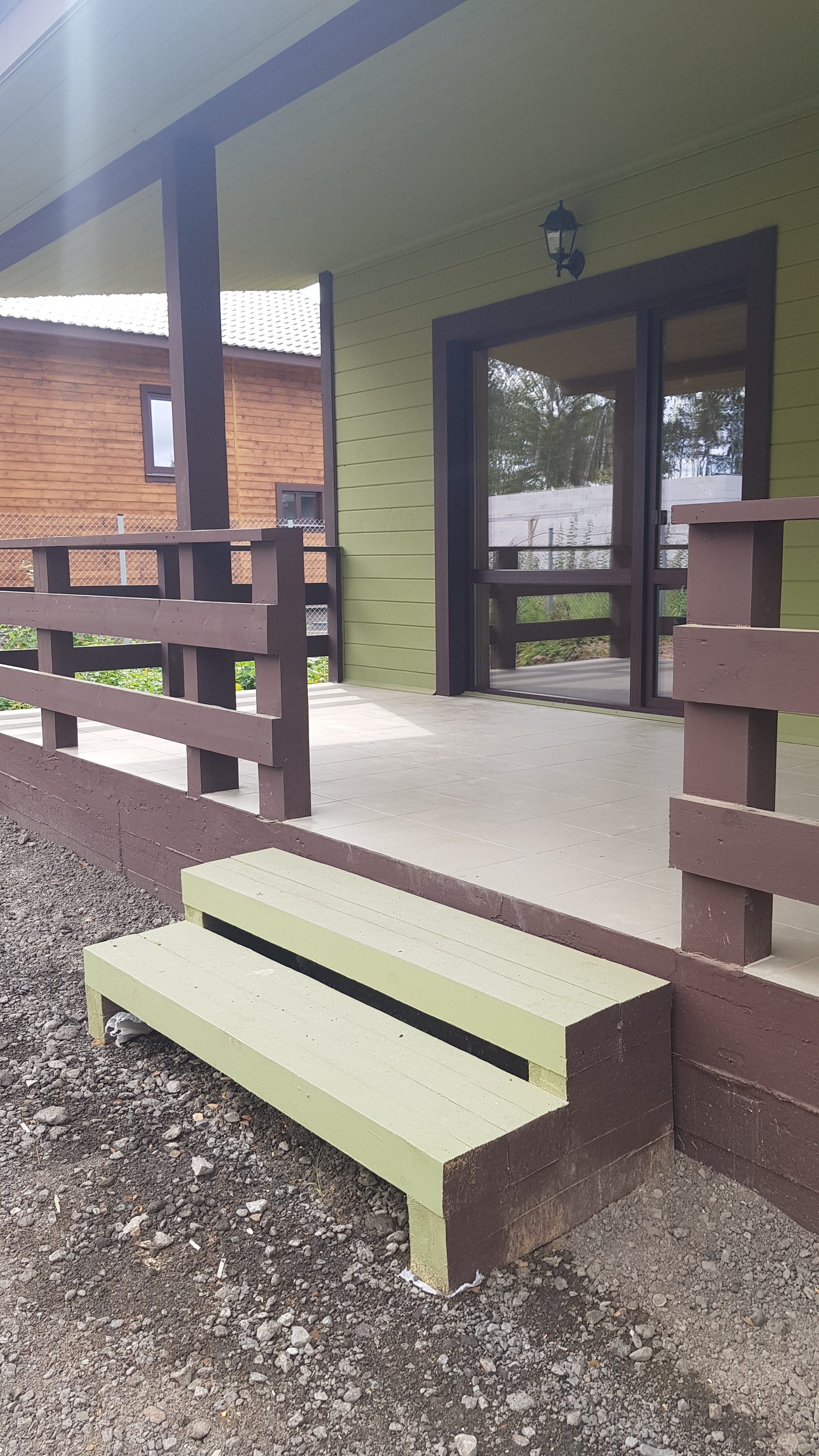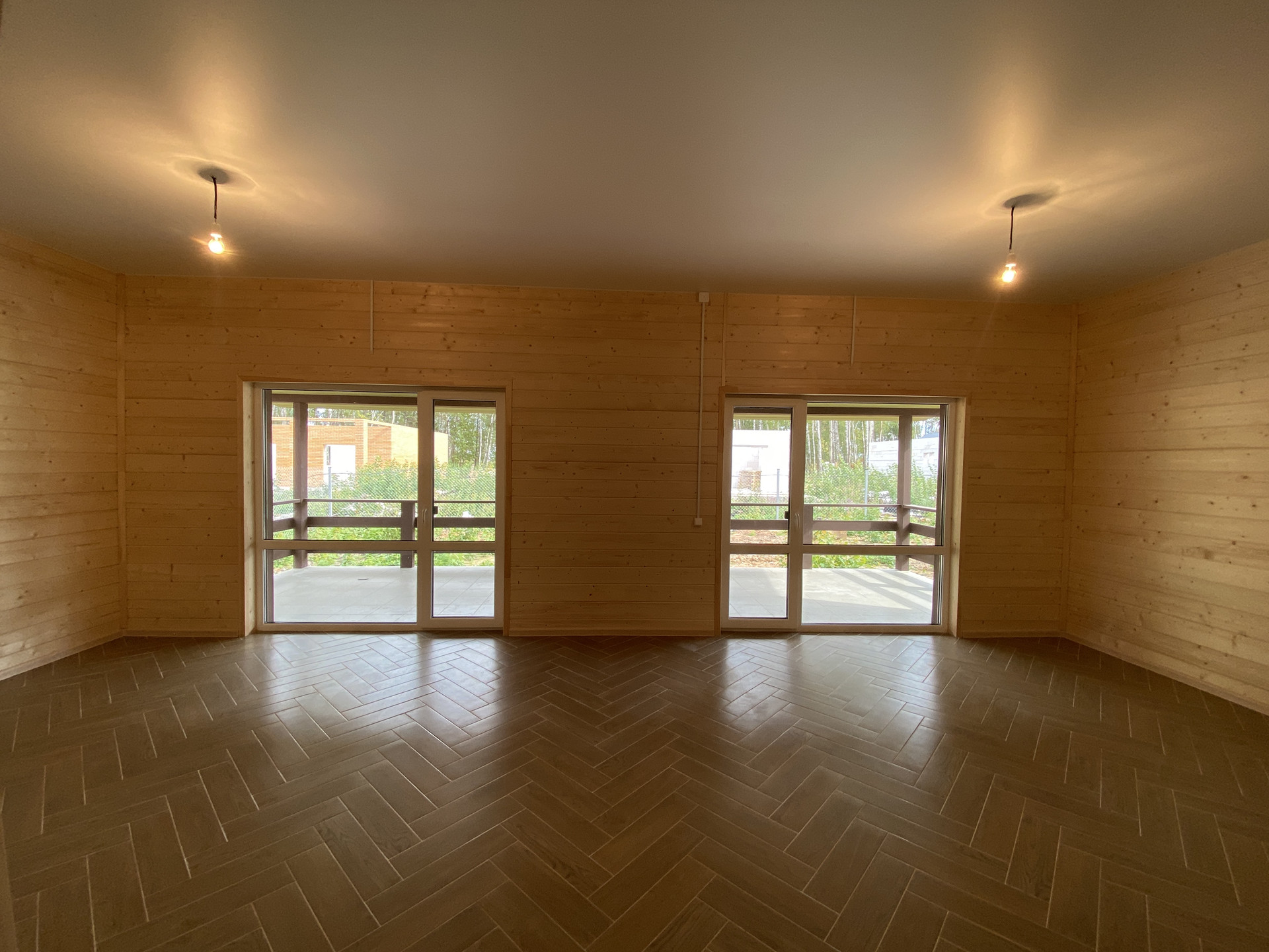 — Смонтированы натяжные потолки на первом этаже;