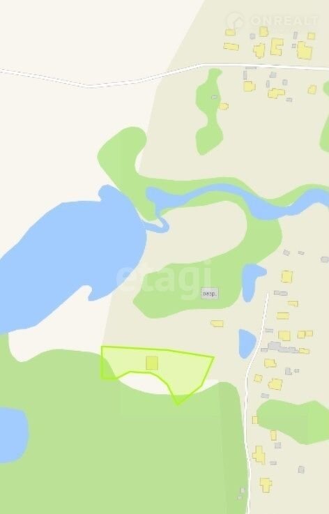 Участок оригинальной формы, граничит с лесом и озером - идеальное место для жизни! До деревни асфальтированная дорога, до участка 200 м насыпная из щебня.