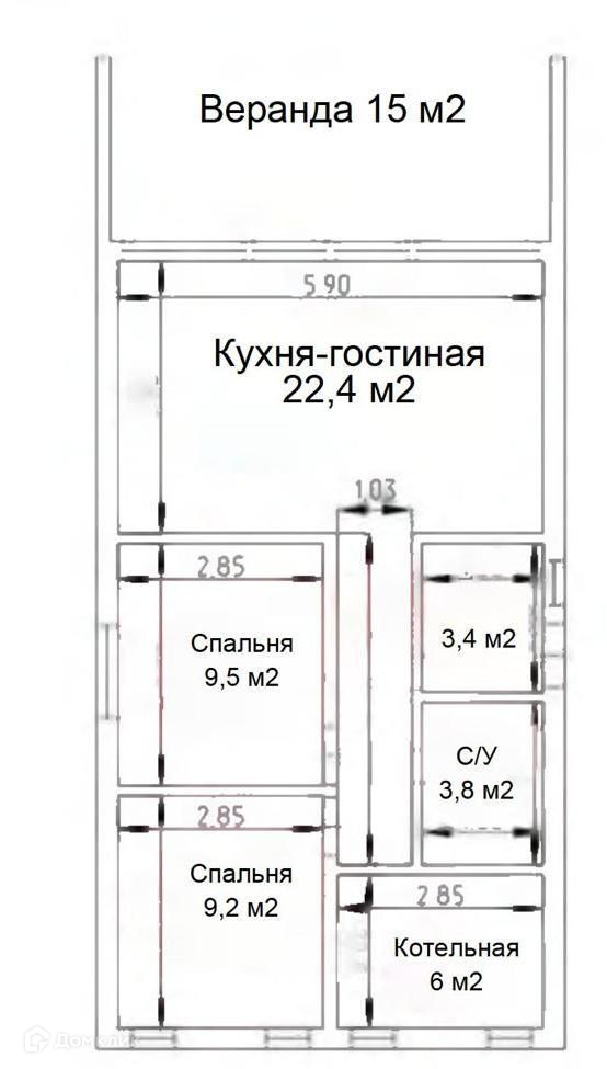 Общая площадь 77 м2