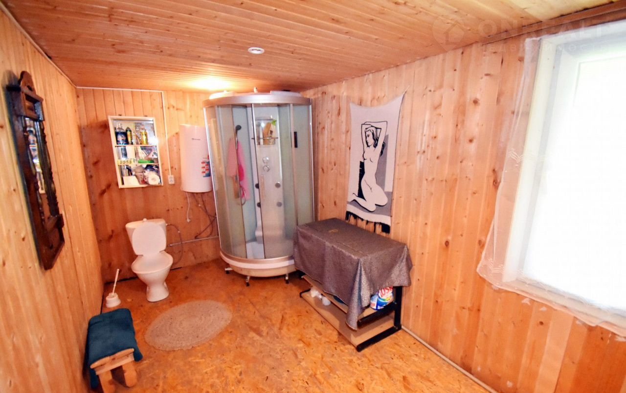 • Первый этаж: три жилые комнаты, кухня и большое помещение под мастерскую или хозяйственные нужды. Также оборудован санузел с душевой кабиной — возможность принять душ в любую погоду!