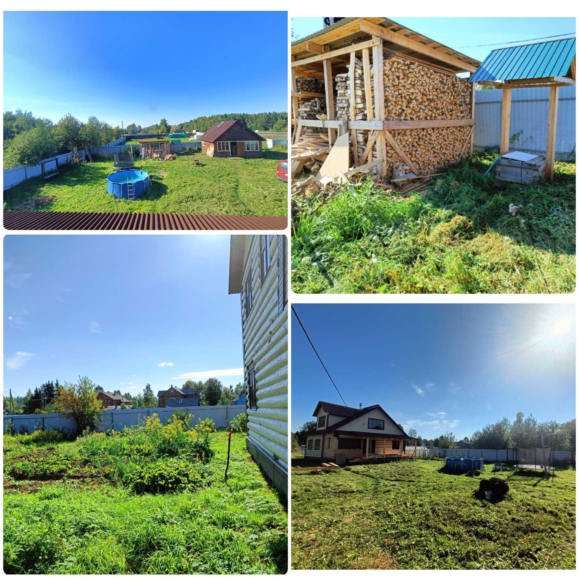 + есть много плодоносящих деревьев и кустов (3 груши, яблоня, вишня, слива, смородина, облепиха, малина), грядки клубники;