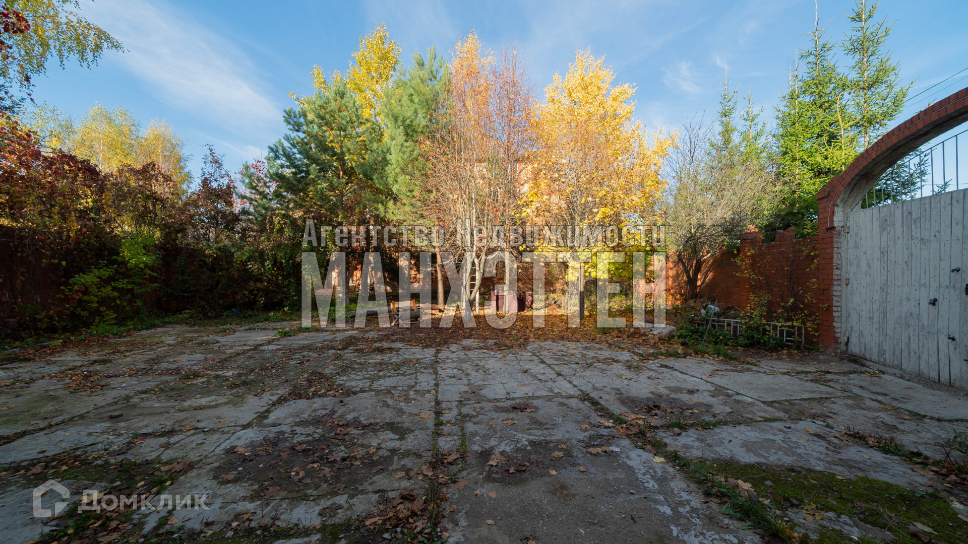 участок огорожен кирпичным забором на фундаменте;