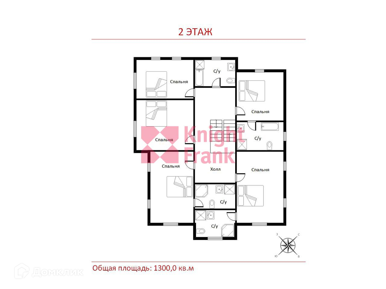 2 этаж: 5 просторных спален, каждая со своим с/у (ванная, душевая) и возможностью организовать отдельные гардеробные в каждой спальне.