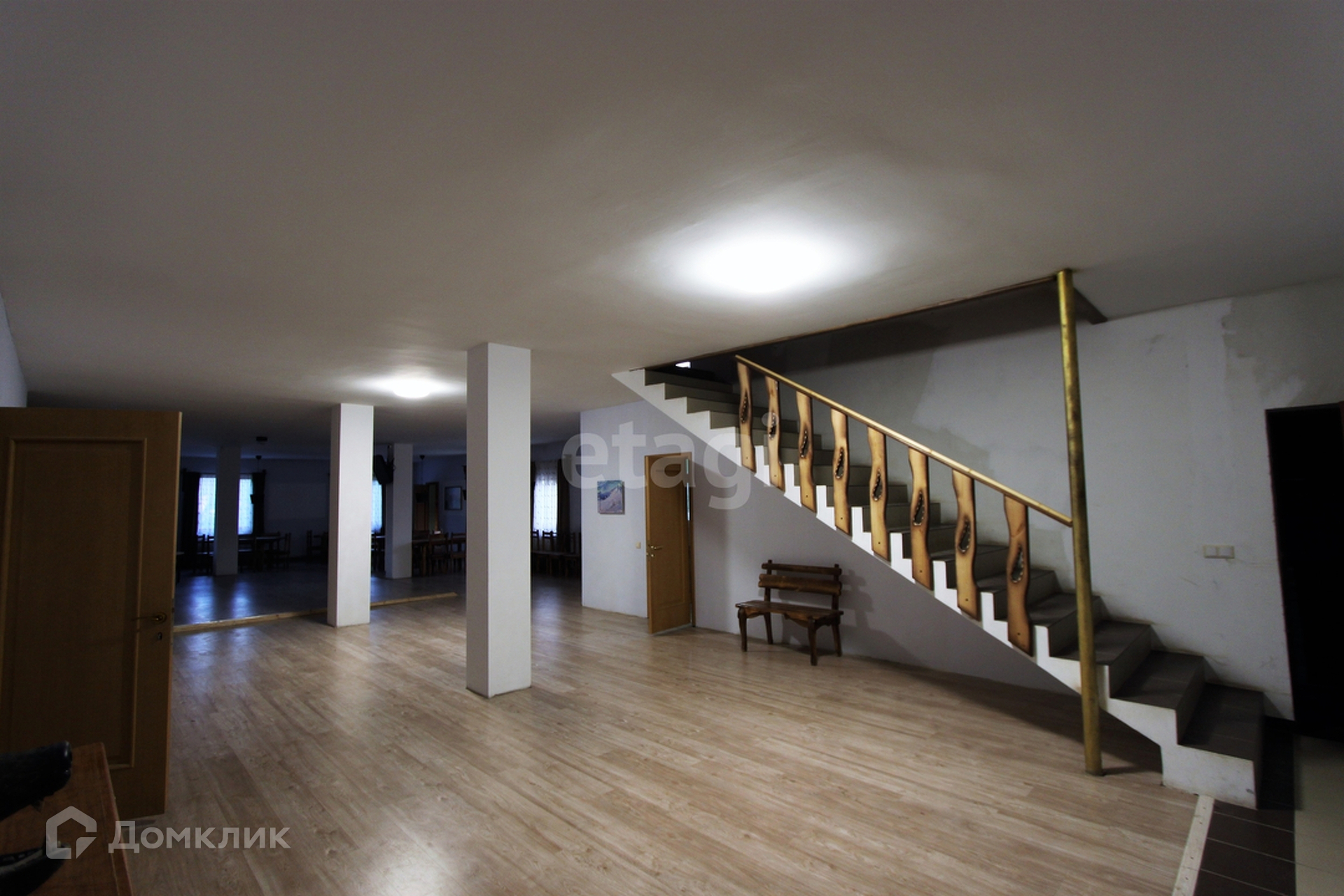 В основном здании 1 этаж: банкетный зал на 60 человек, сцена, бар, караоке и тренажерный зал, русская баня, массажный кабинет, бассейн