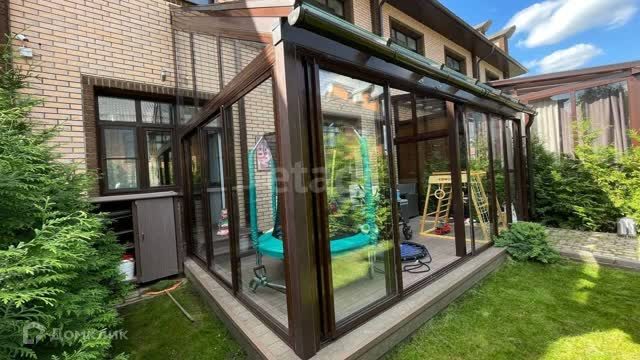 Имеется придомовая территория с выходом на веранду, хвойные деревья и мангальная зона. Веранда полностью остеклена, оборудована раздвижными стеклами, потолок из стеклопакетов.
