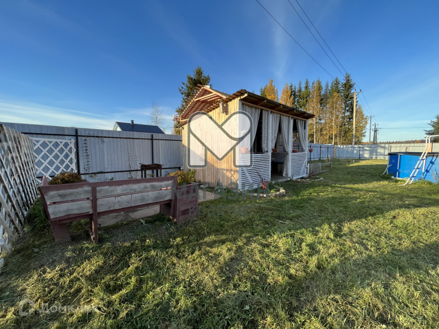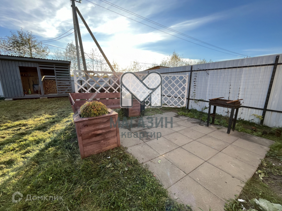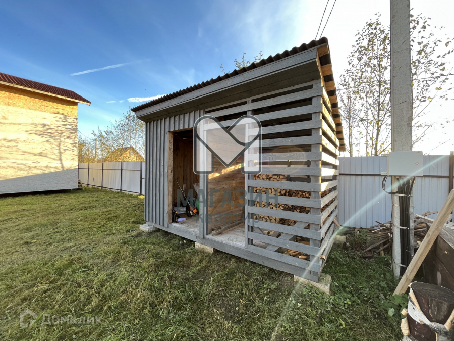На участке беседка с выделенной кухонной зоной ( есть освещение и розетки), мангальная зона, хозблок и дровенник. Высажен молодой сад.