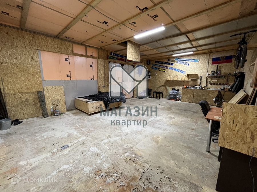 Есть гараж 6*9, фундамент плита. Высота потолка 3 метра. 2 ворот 2*2,5 метра. Полная разводка электричества. Есть чердак.