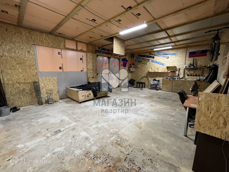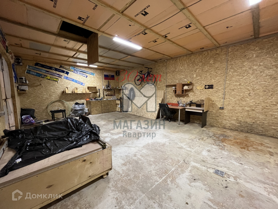 Есть гараж 6*9, фундамент плита. Высота потолка 3 метра. 2 ворот 2*2,5 метра. Полная разводка электричества. Есть чердак.