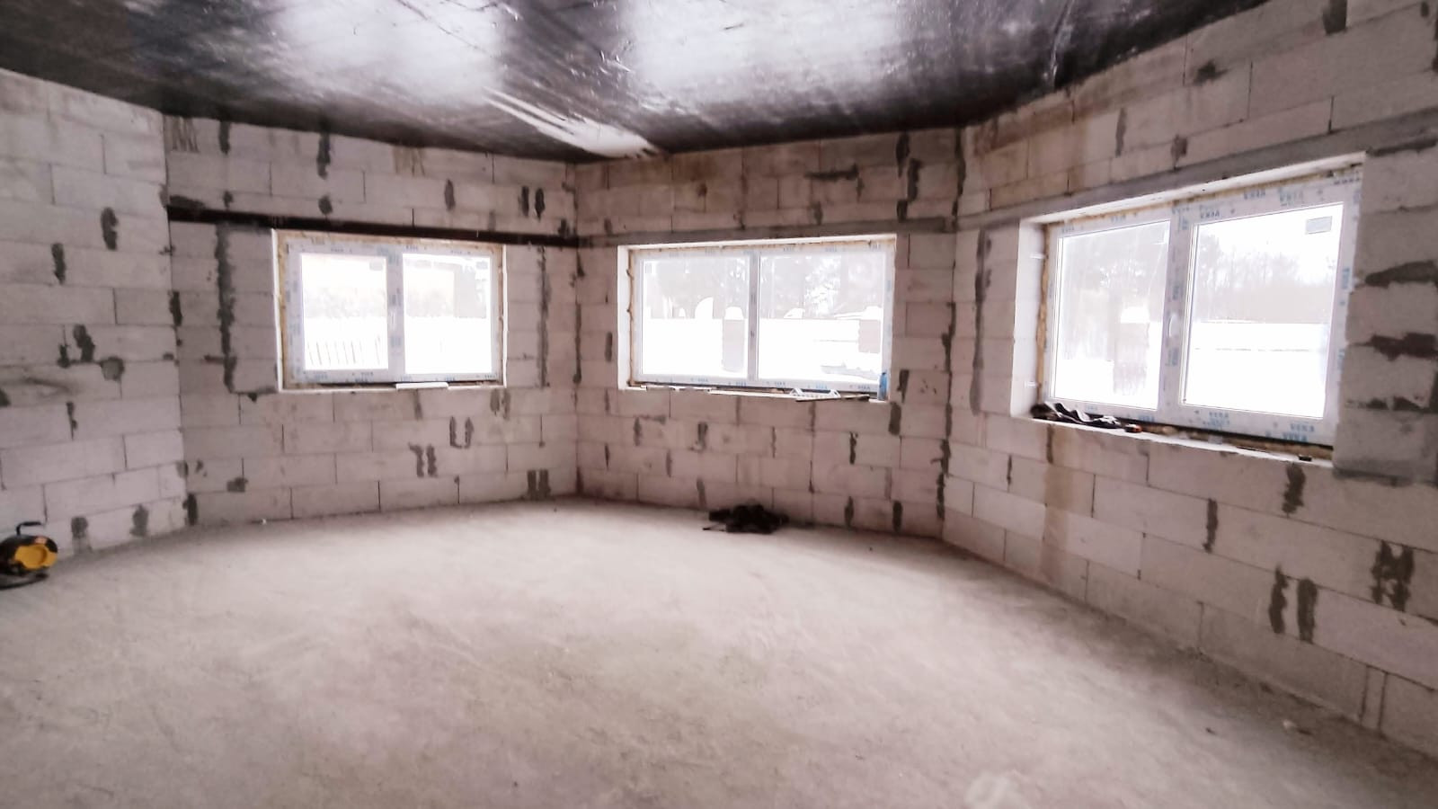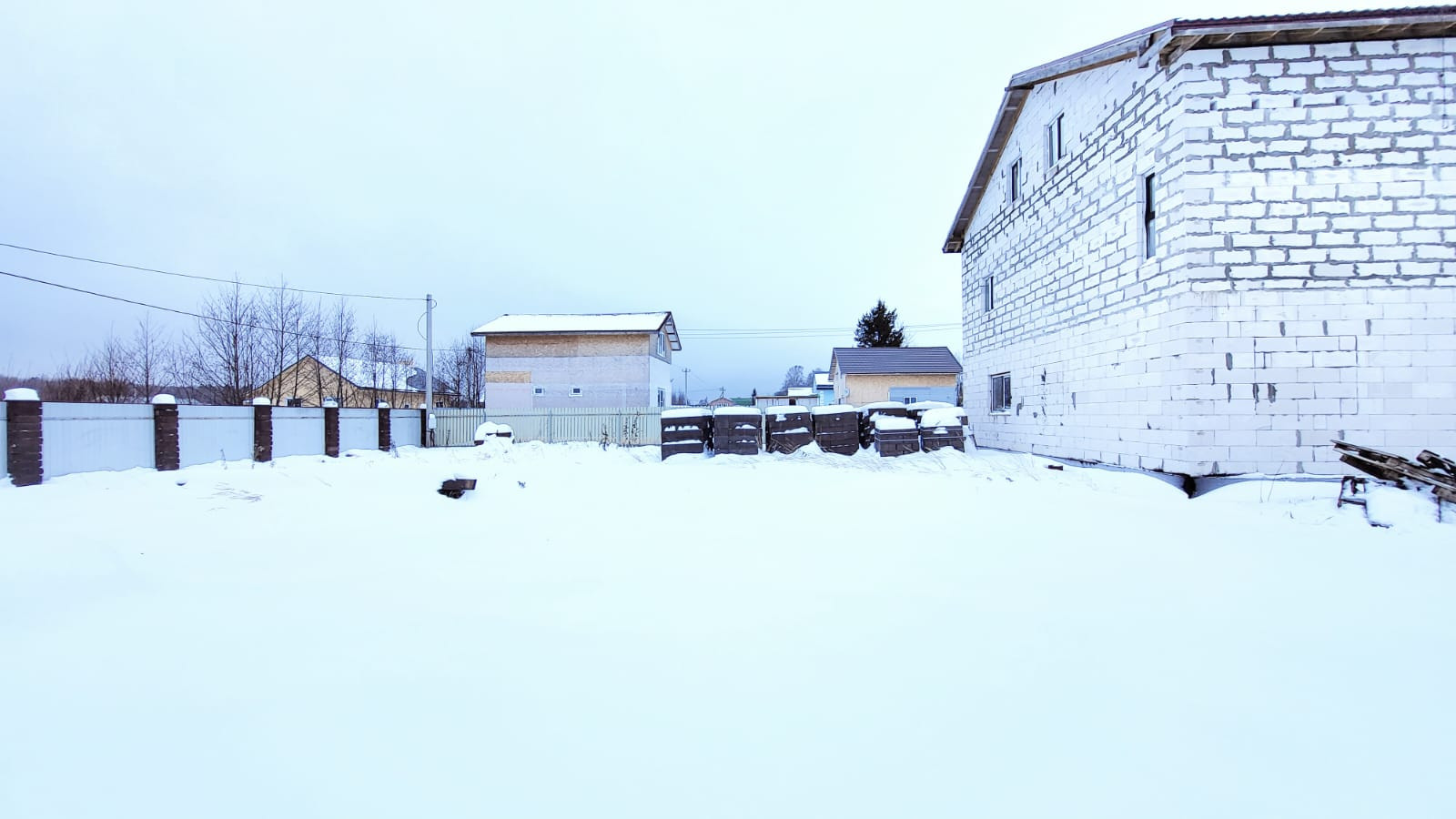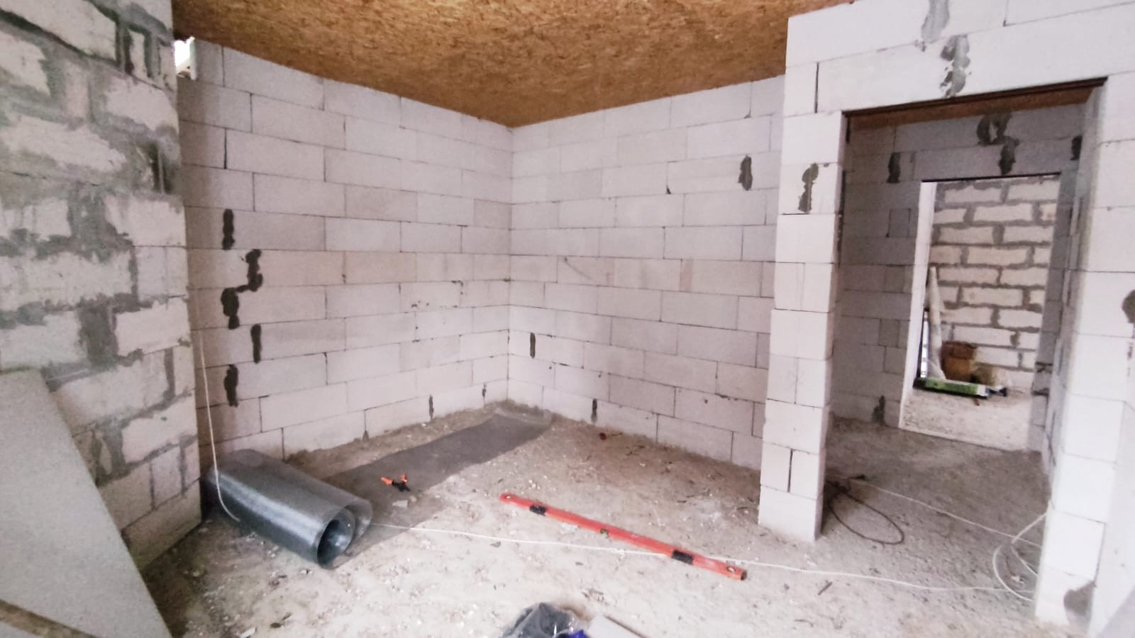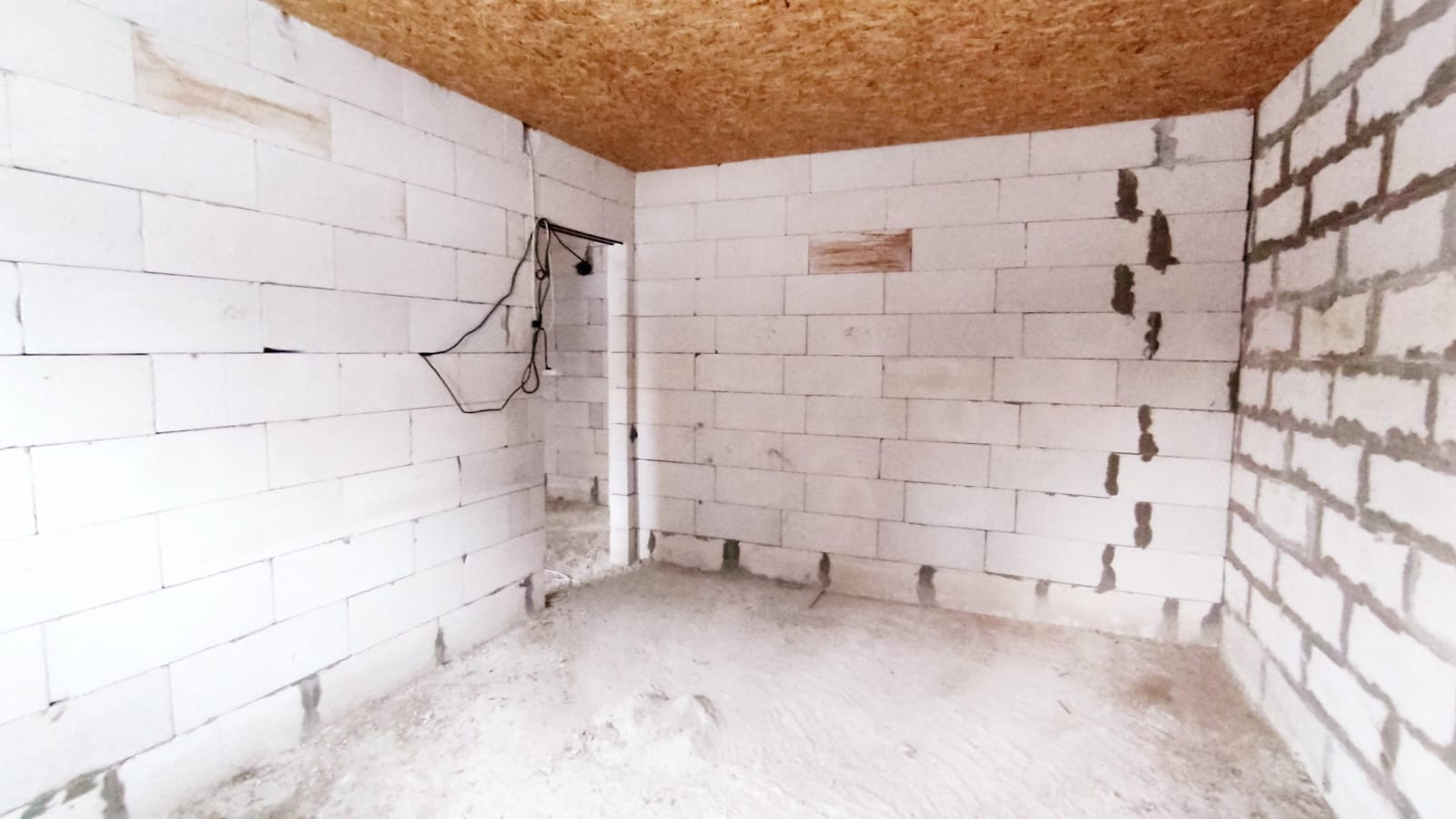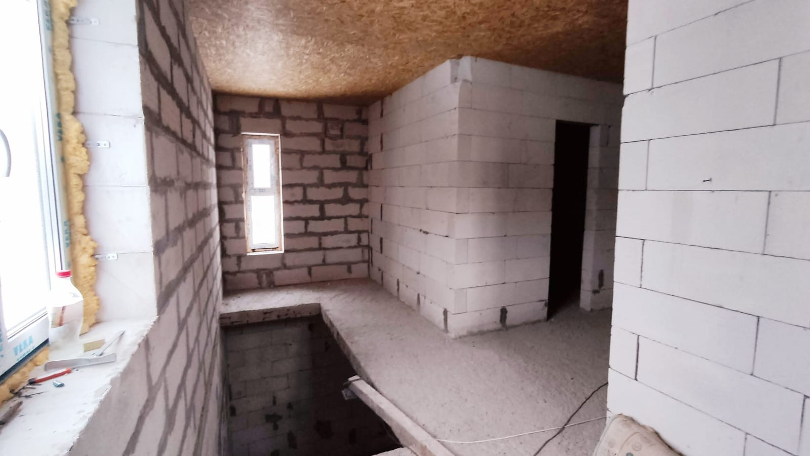 Дом построен в 2022 году из газобетона, толщина стен 40 см. Фундамент -монолитная плита, утеплена снизу пеноплексом. Между 1 и 2 этажами - монолитное ж/б перекрытие, между 2 и 3 этажами - деревянное перекрытие. Установлены двухкамерные стеклопакеты, дверь с терморазрывом. Крыша - металлочерепица. Электричество - 15 кВт заведено в дом.