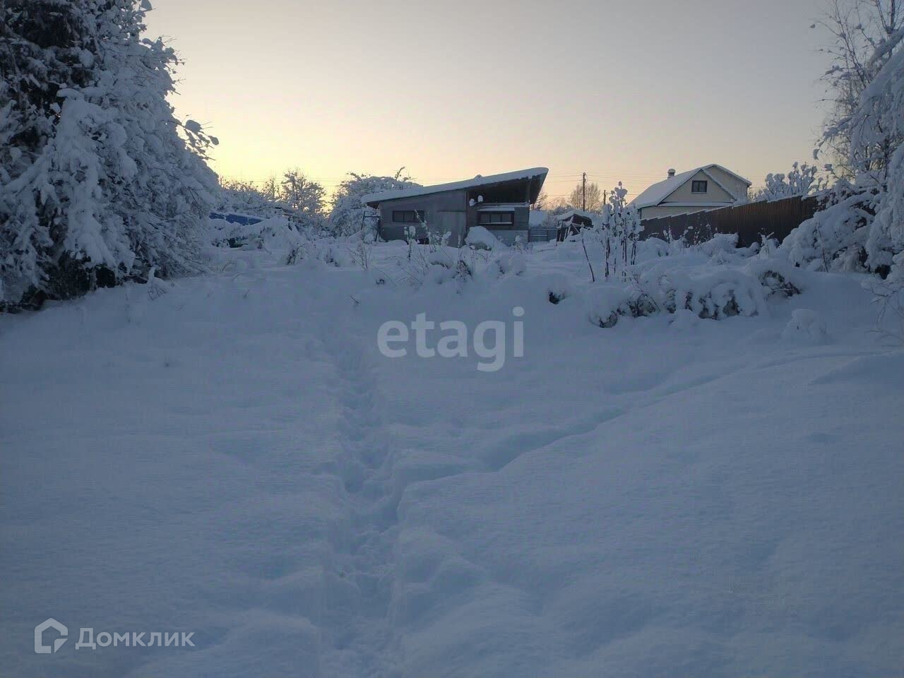 Весь участок обнесен забором.