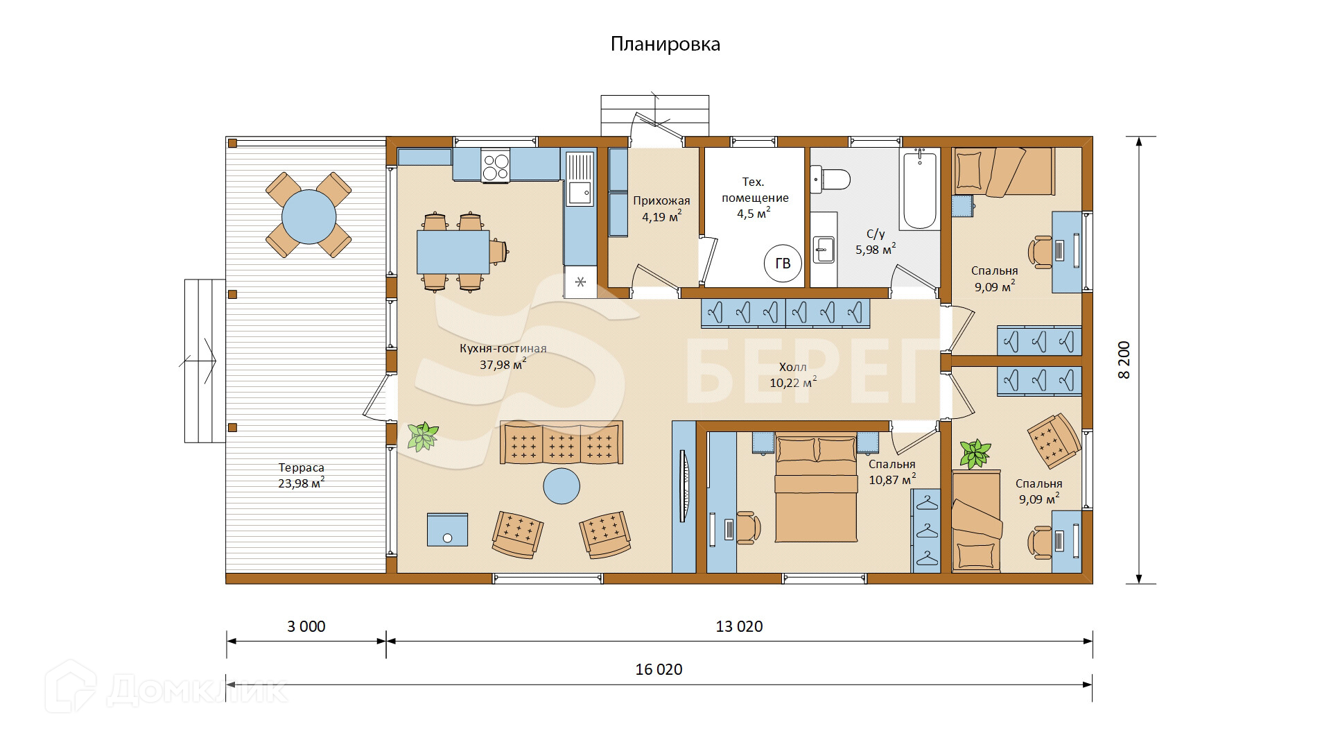 • Общая площадь с террасой: 132 м²
