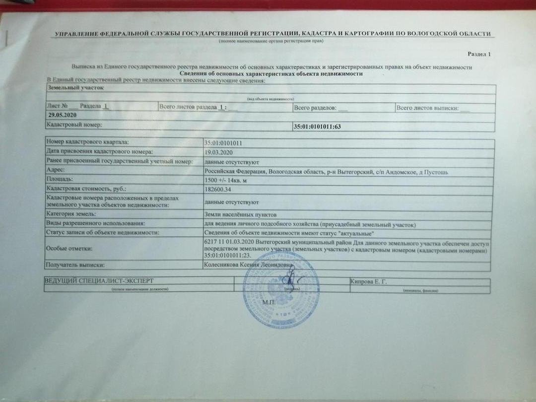 Земельный участок находится с правой стороны дороги по направлению Вытегра-д. Устье(база МЧС)