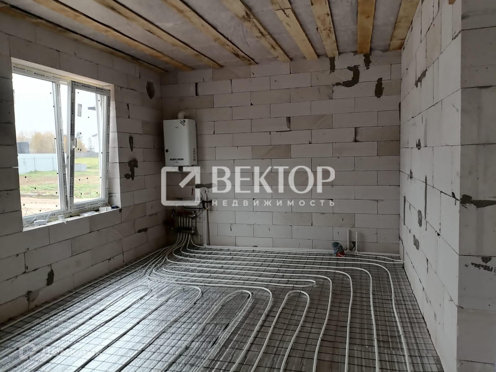 Установлен газовый котел. На данный момент ведутся работы по заливке теплого пола по всему первому этажу
