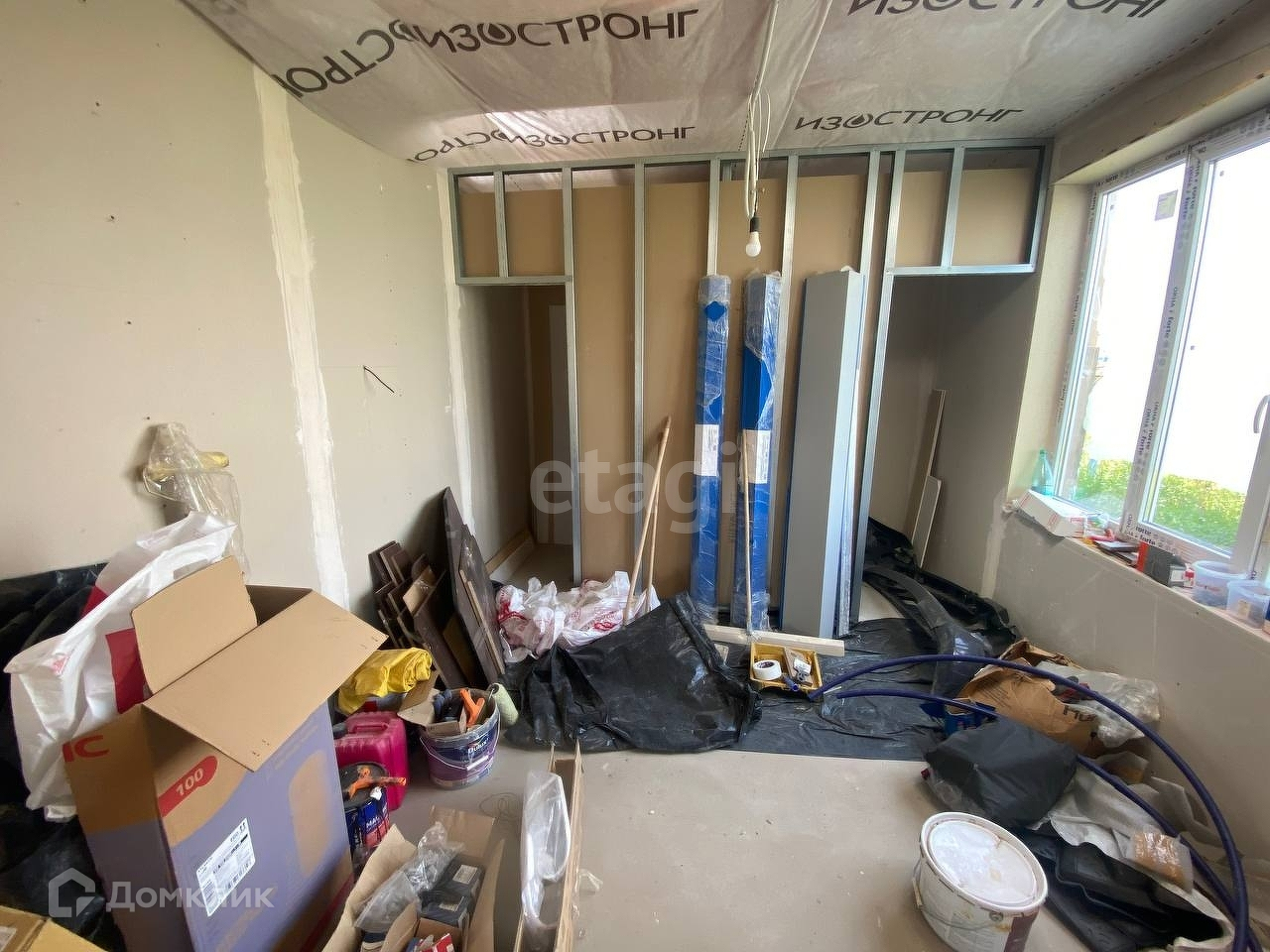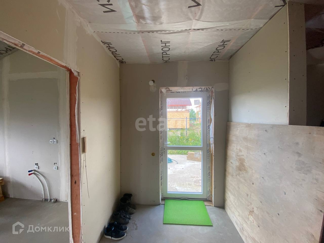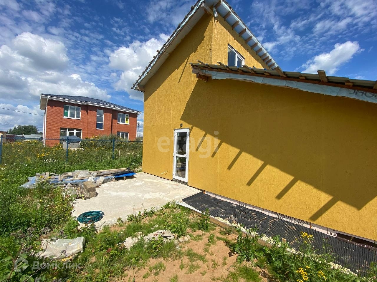 Под веранду или террасу залита бетонная плита. В наличии остатки металлочерепицы для ее возведения, а так же металлические элементы, необходимые для подшивки свесов крыш. Также, новому владельцу остается весь строительный материал, находящийся в доме, необходимый для ремонтных работ.