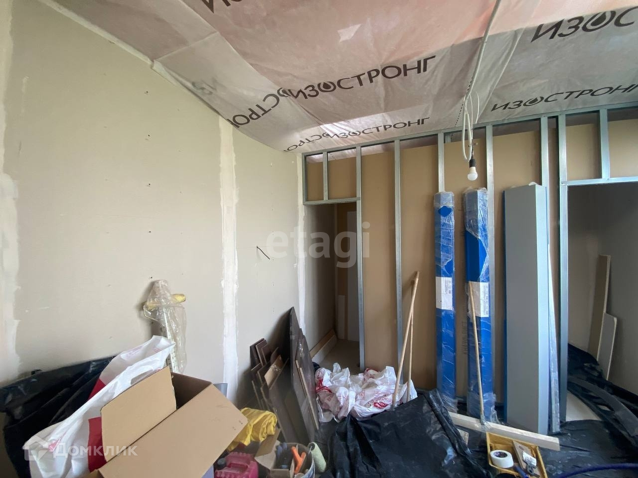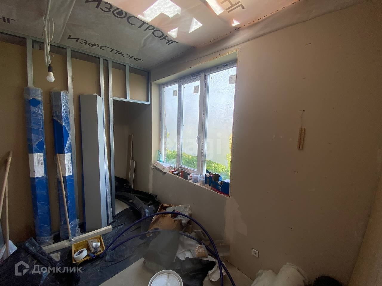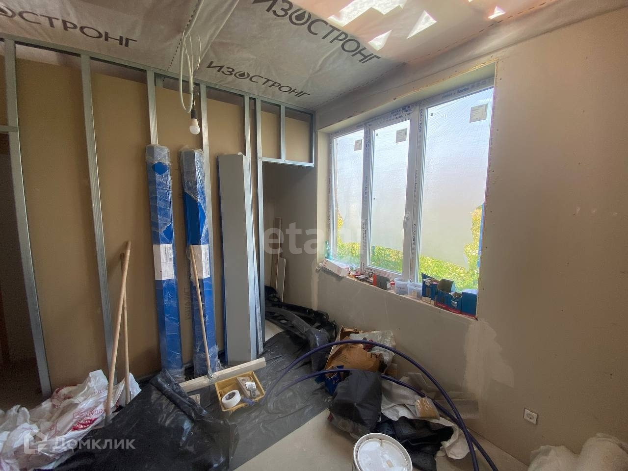 Под веранду или террасу залита бетонная плита. В наличии остатки металлочерепицы для ее возведения, а так же металлические элементы, необходимые для подшивки свесов крыш. Также, новому владельцу остается весь строительный материал, находящийся в доме, необходимый для ремонтных работ.