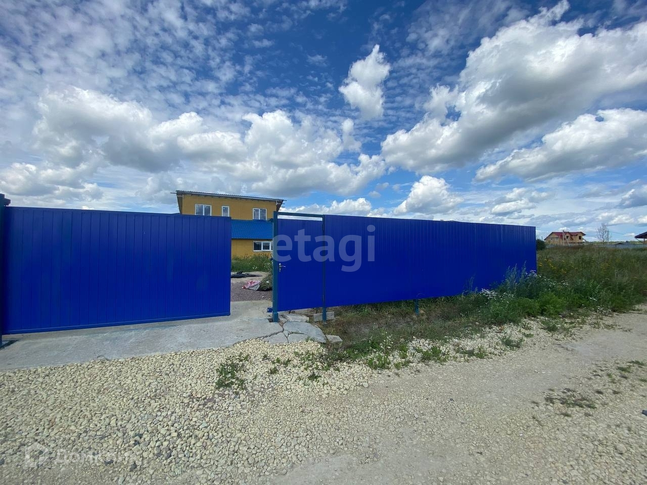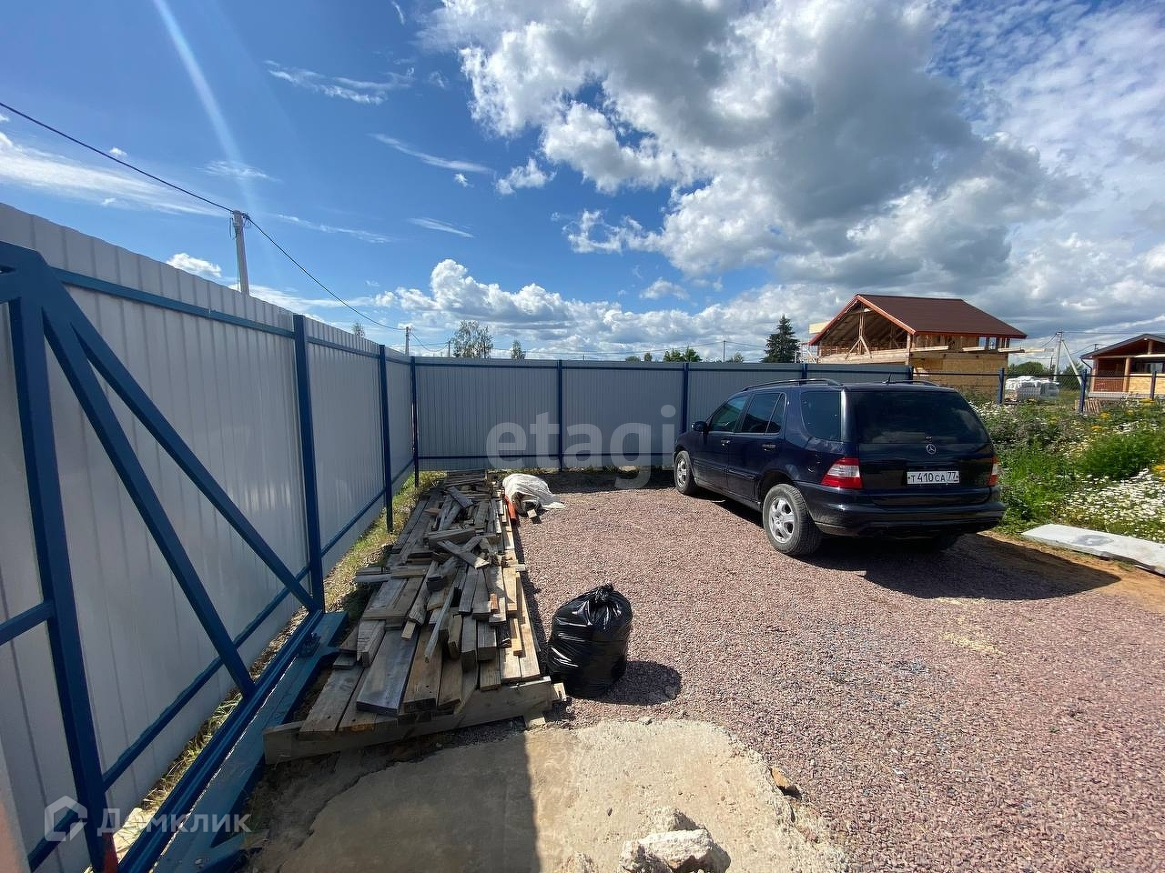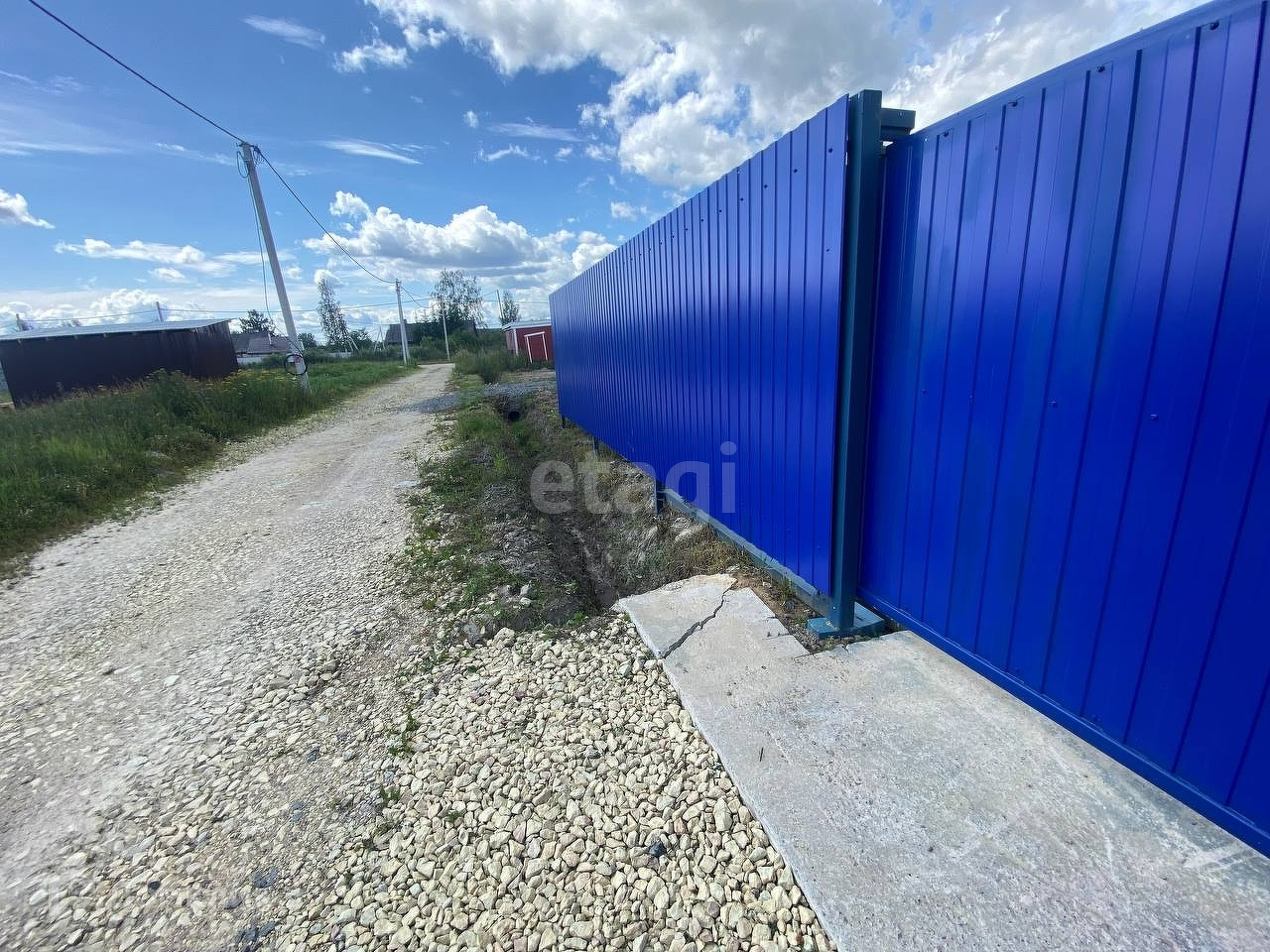 Забор комбинированный: торцевая сторона из профлиста + калитка + откатные ворота (автоматика не установлена, но сделан вывод электрокабеля для ее подключения), стороны вдоль соседских участков из рабицы.