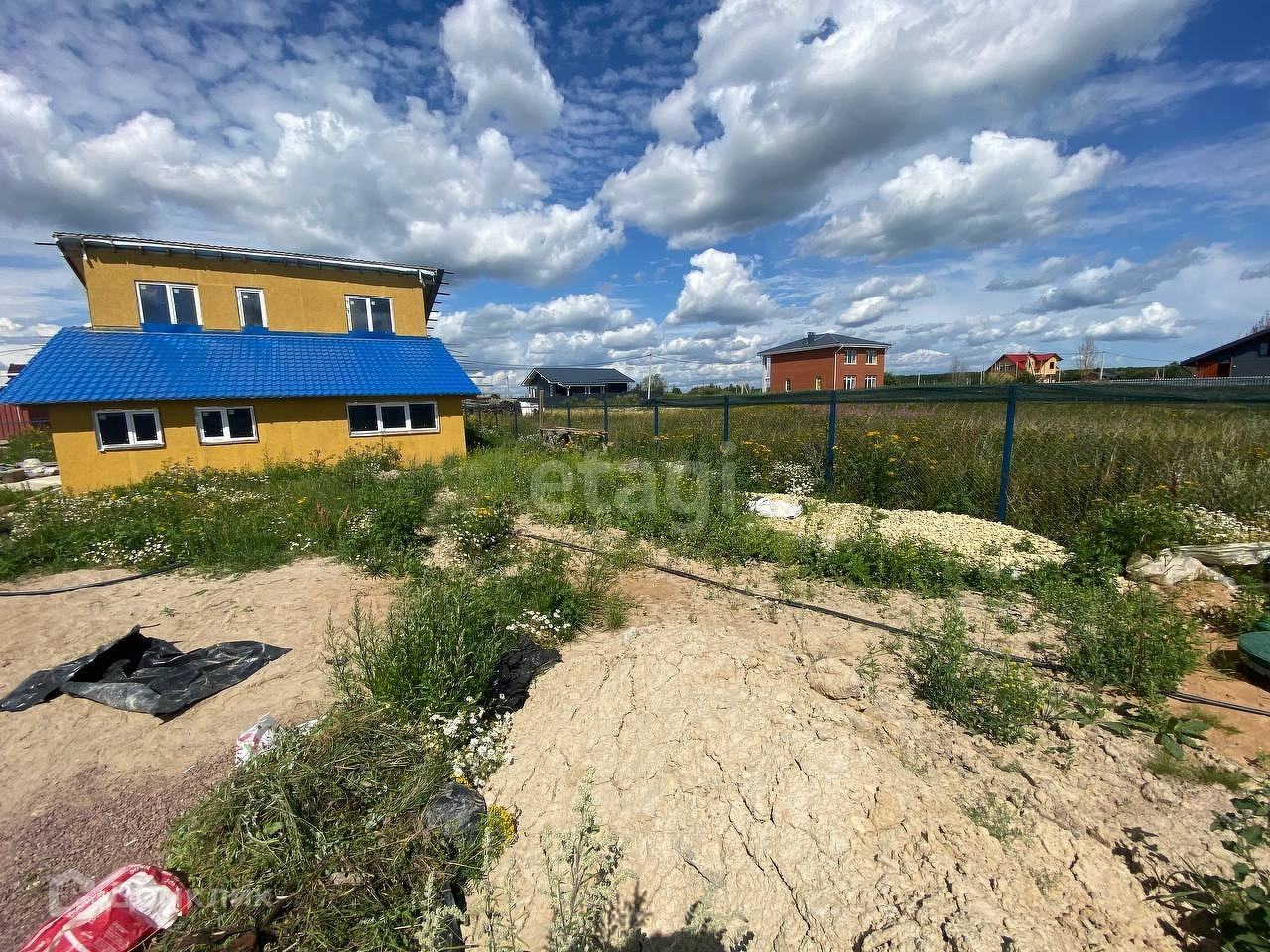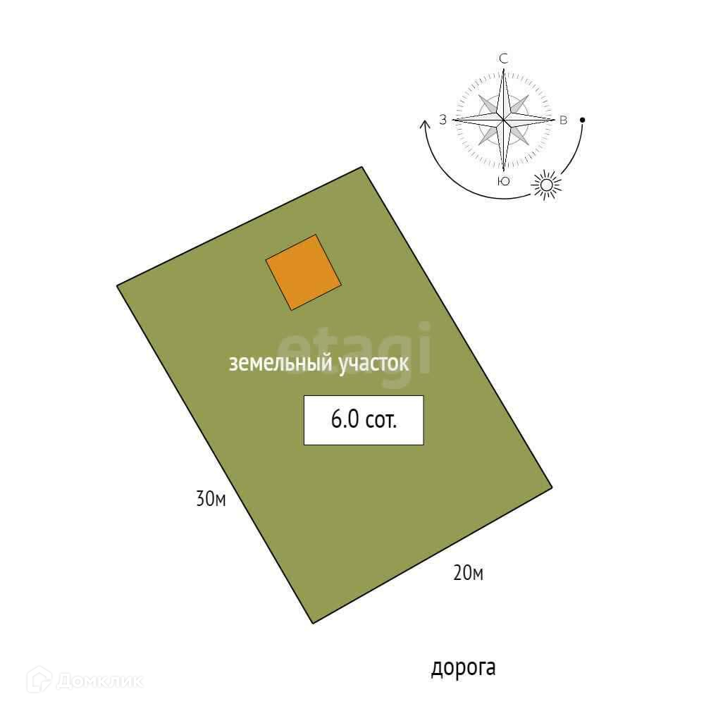Участок: 6 соток;, сухой, за счет копки котлована под фундамент и септик, уровень участка поднялся относительно других участков.