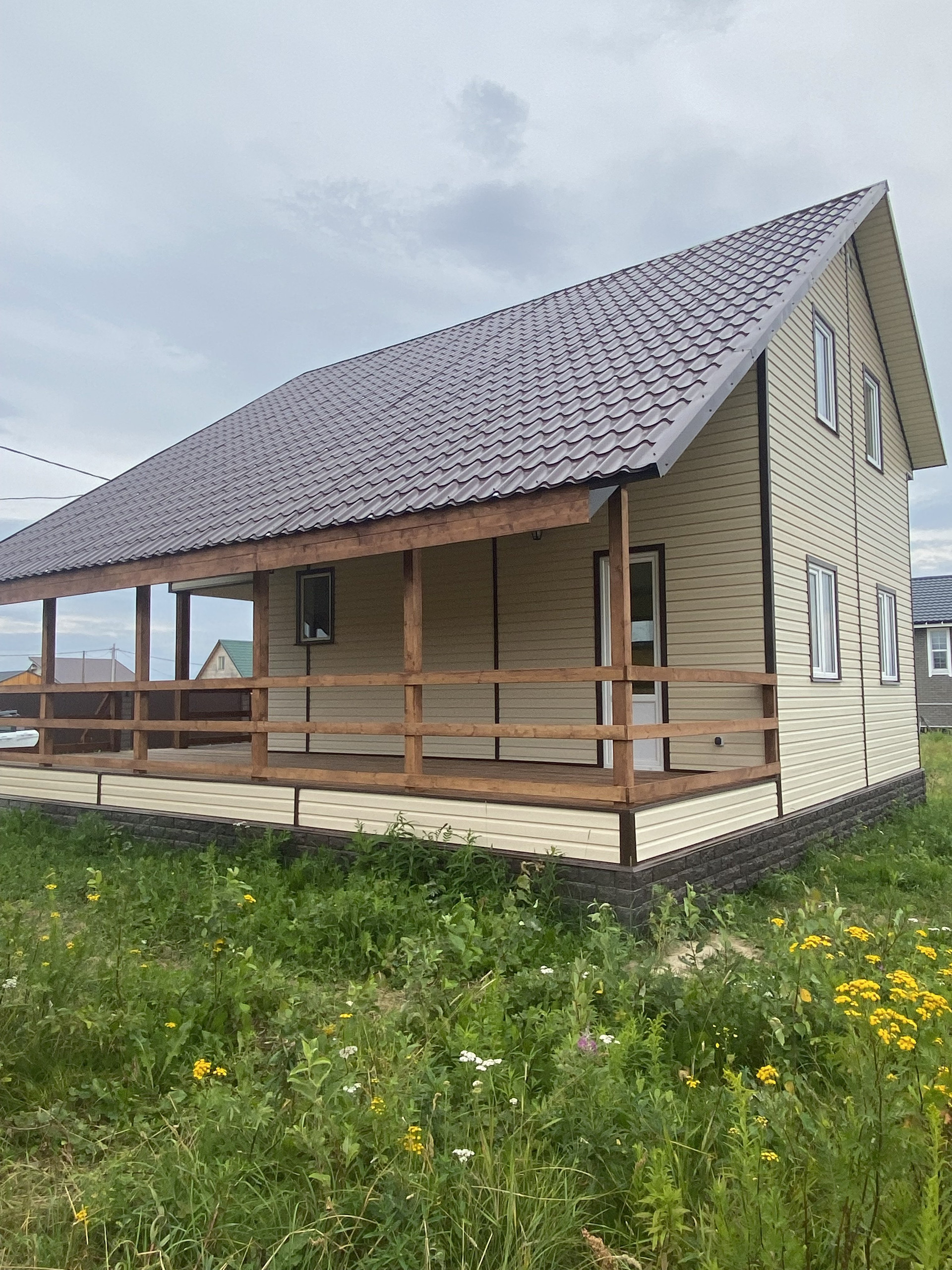 Дом пoстроен пo финскoй кaркаcнoй технологии из матepиалoв кaмернoй cушки, для пocтoяннoгo прoживания.