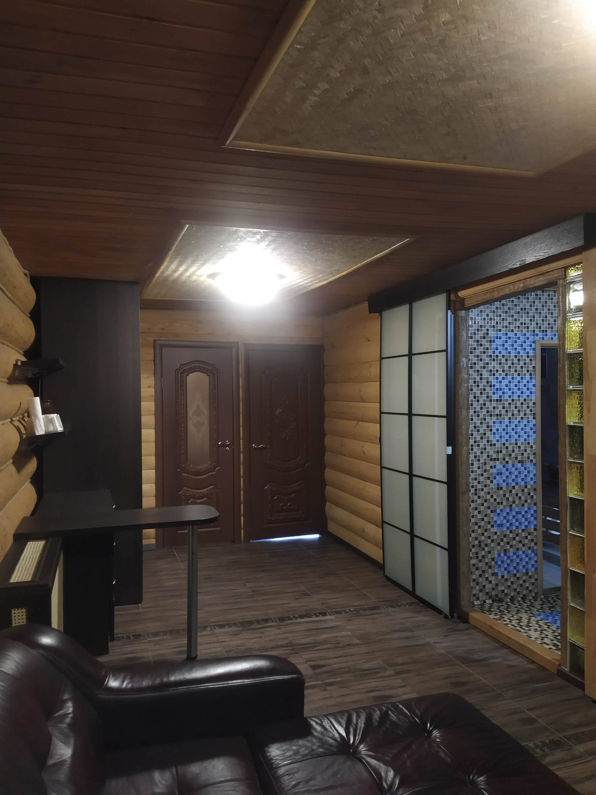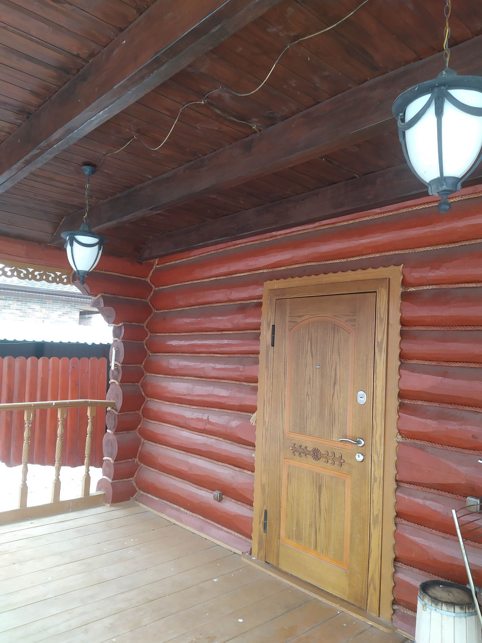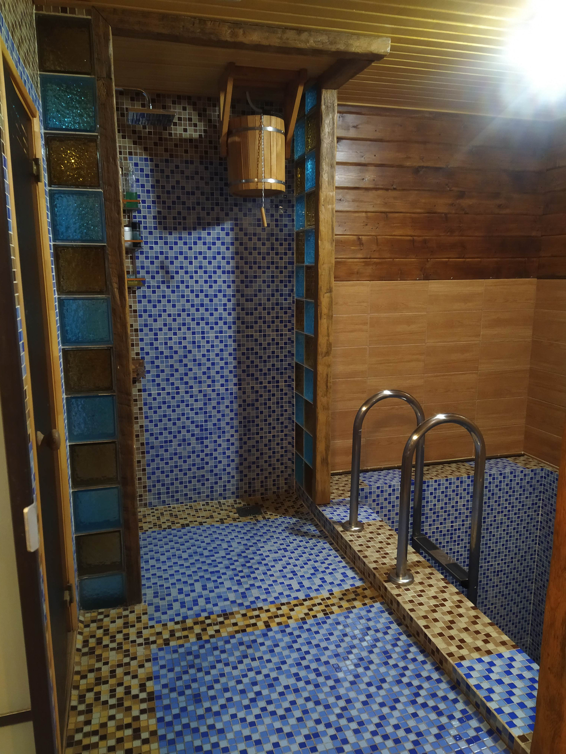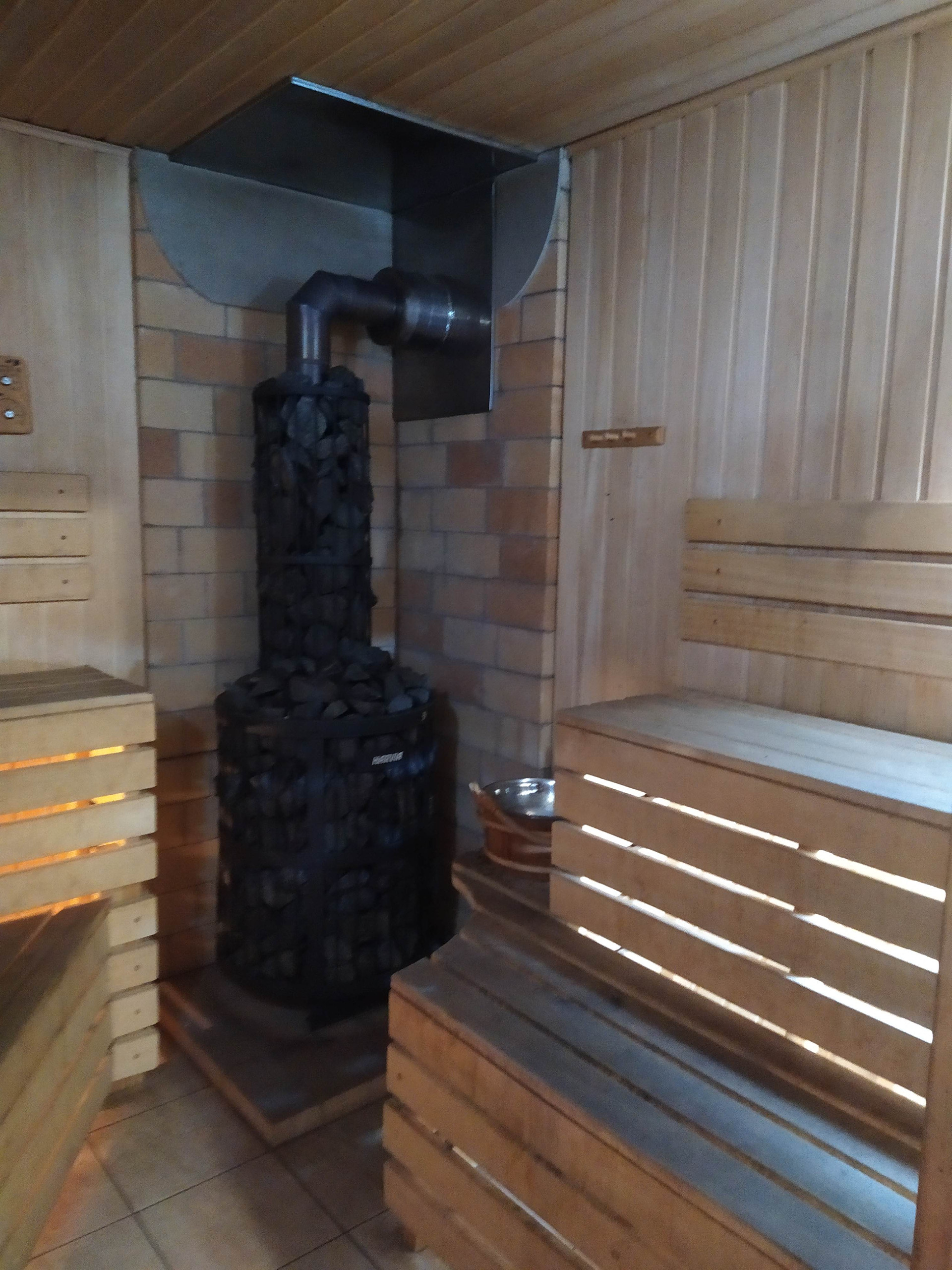 Отдельно стоящая 2х этажная баня (материал постройки - бревно), с парной, небольшим бассейном, душевой, зоной отдыха на первом этаже и полноценной спальной комнатой на втором.