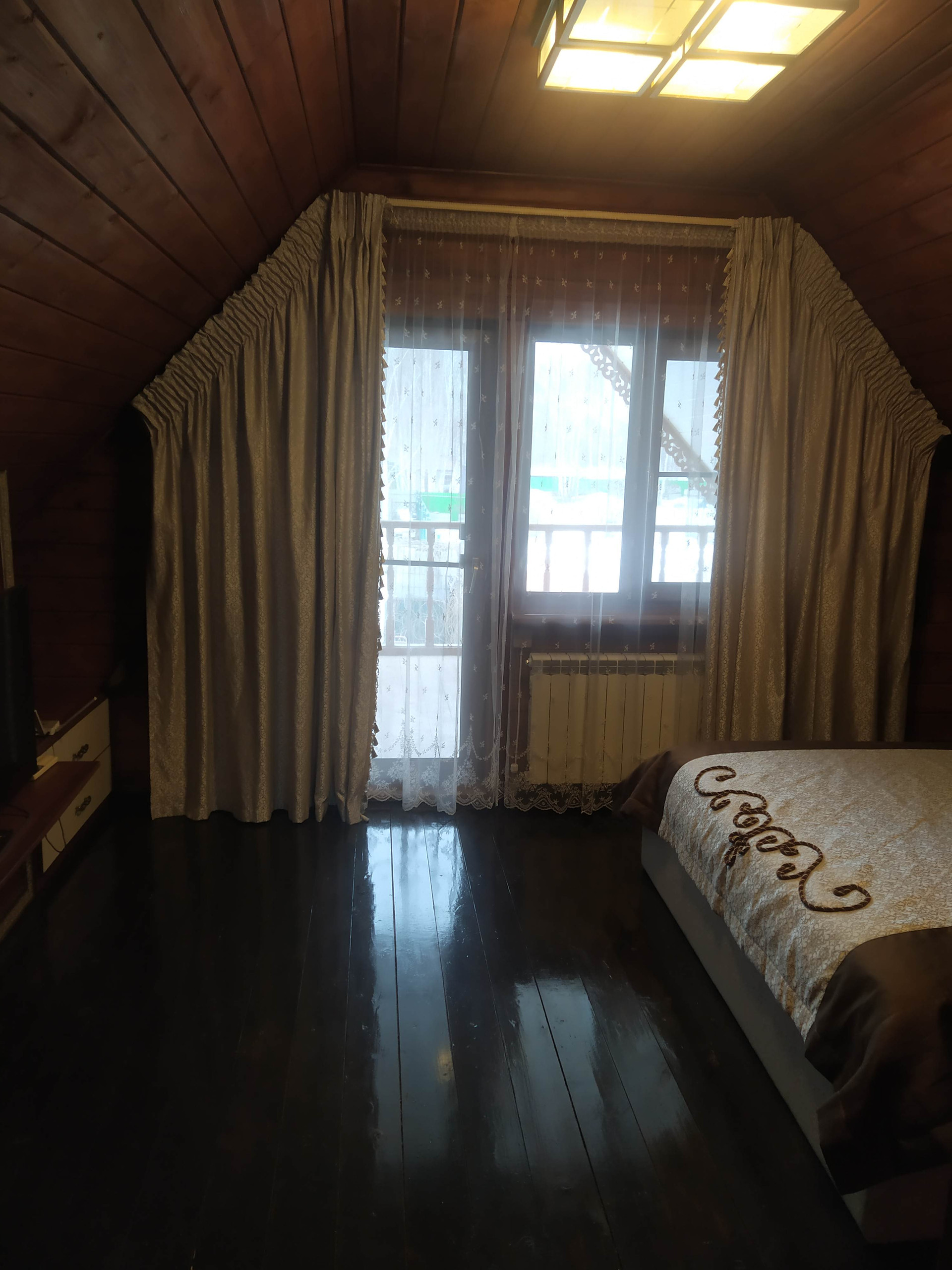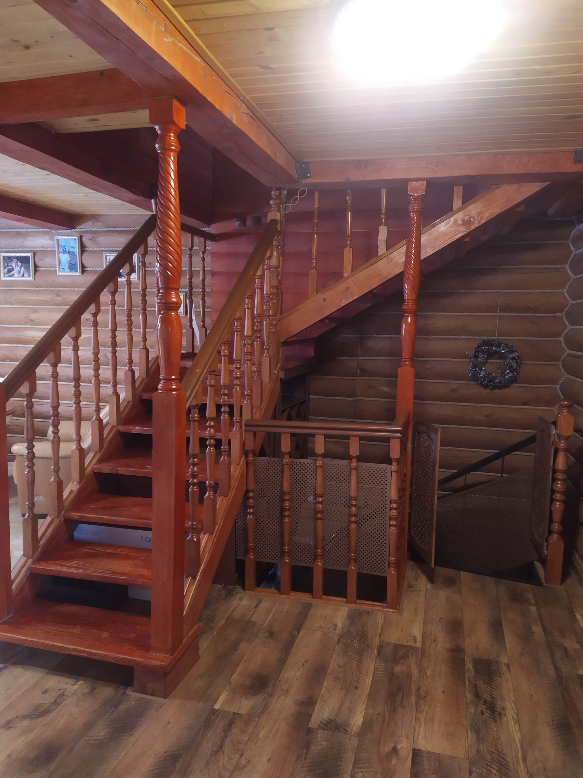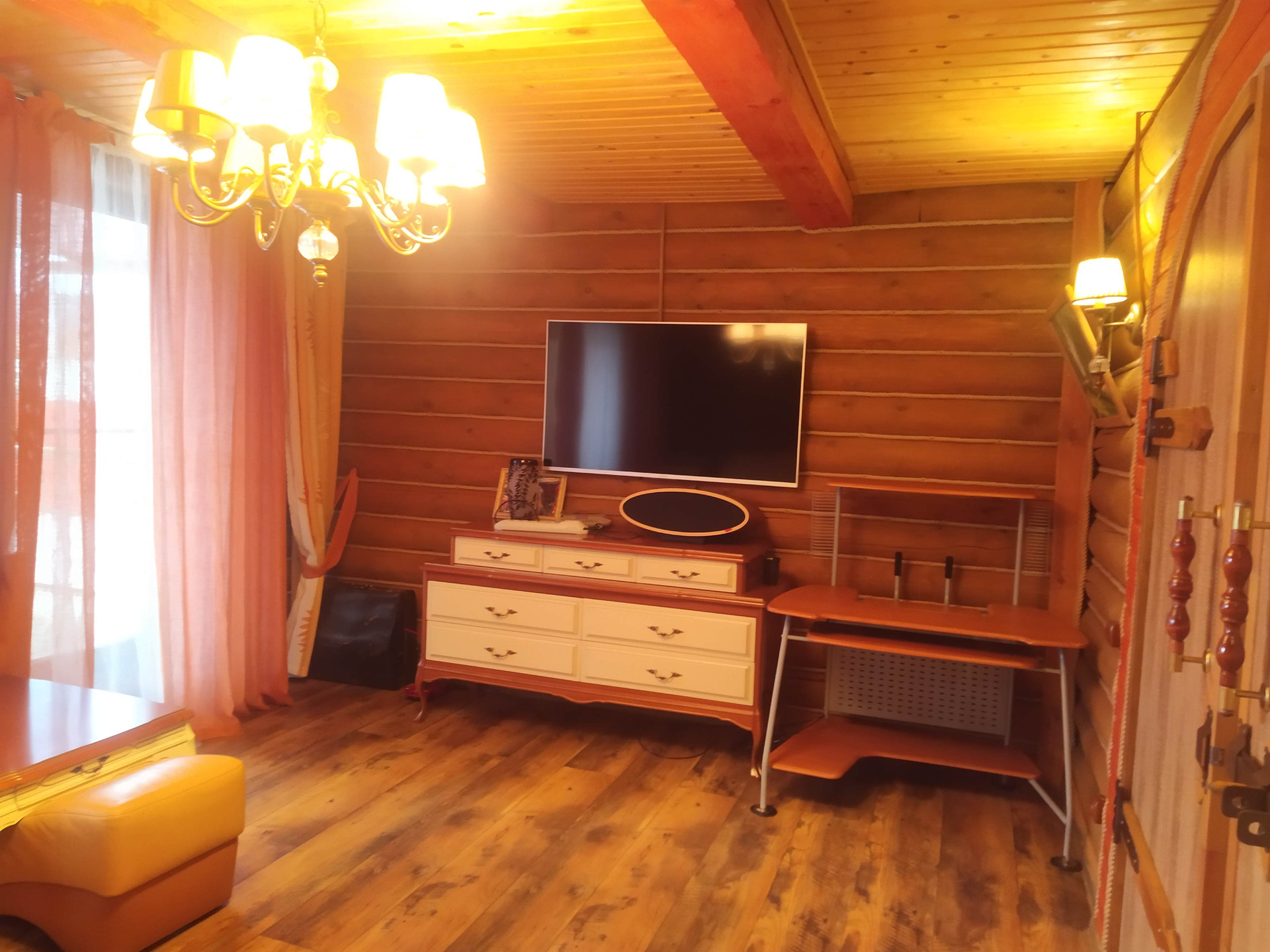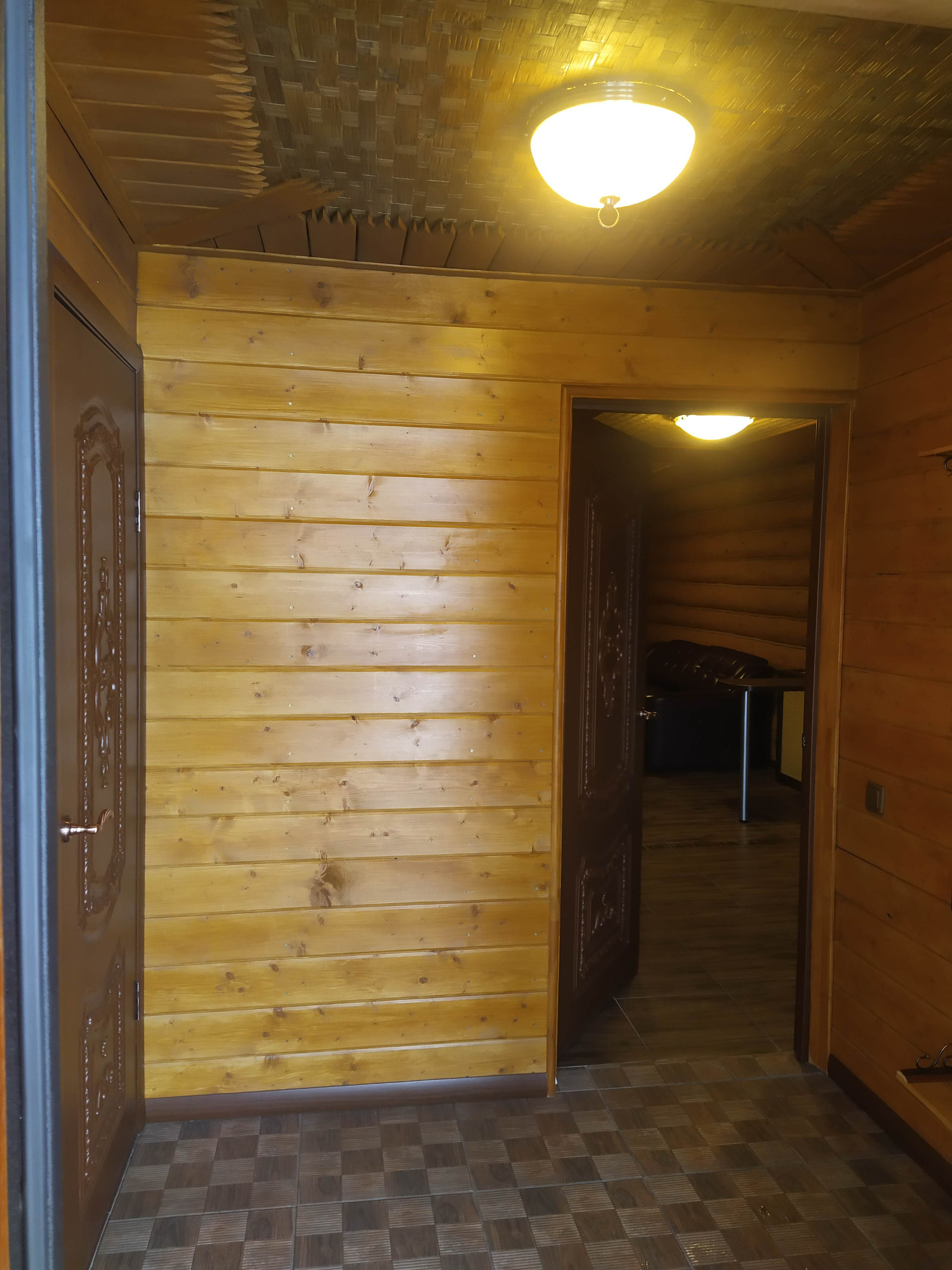 Отдельно стоящая 2х этажная баня (материал постройки - бревно), с парной, небольшим бассейном, душевой, зоной отдыха на первом этаже и полноценной спальной комнатой на втором.
