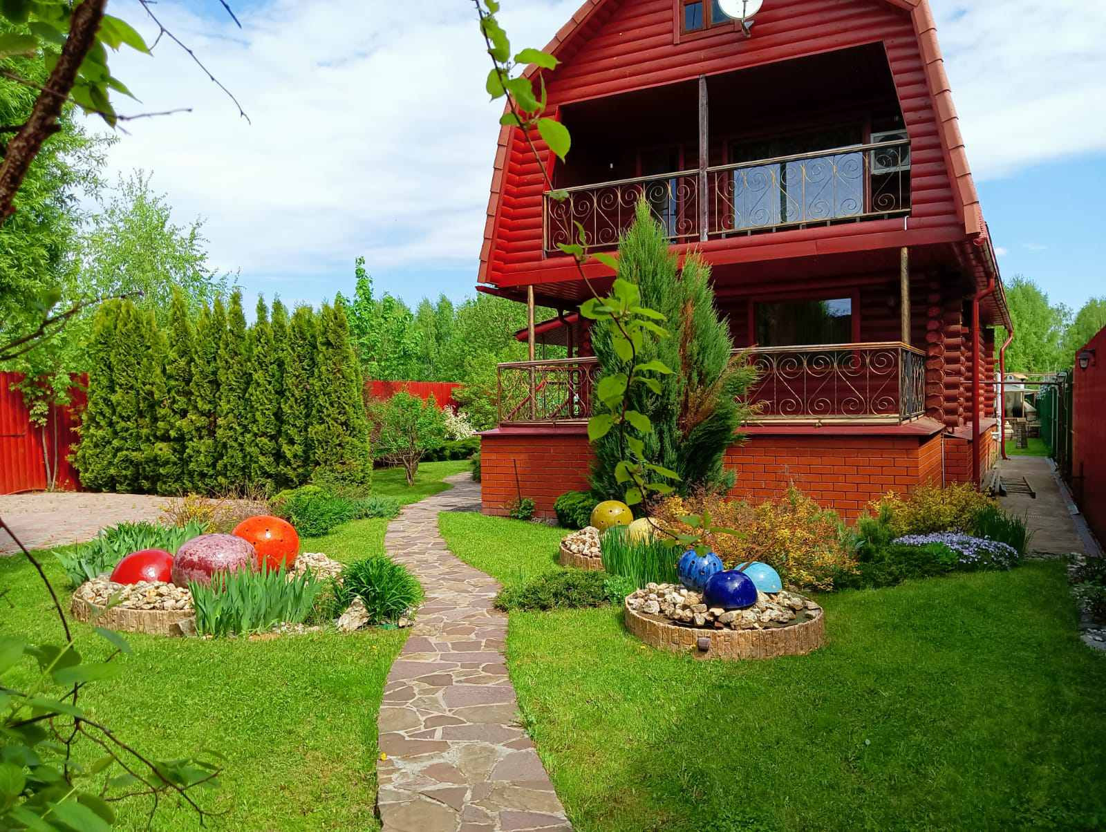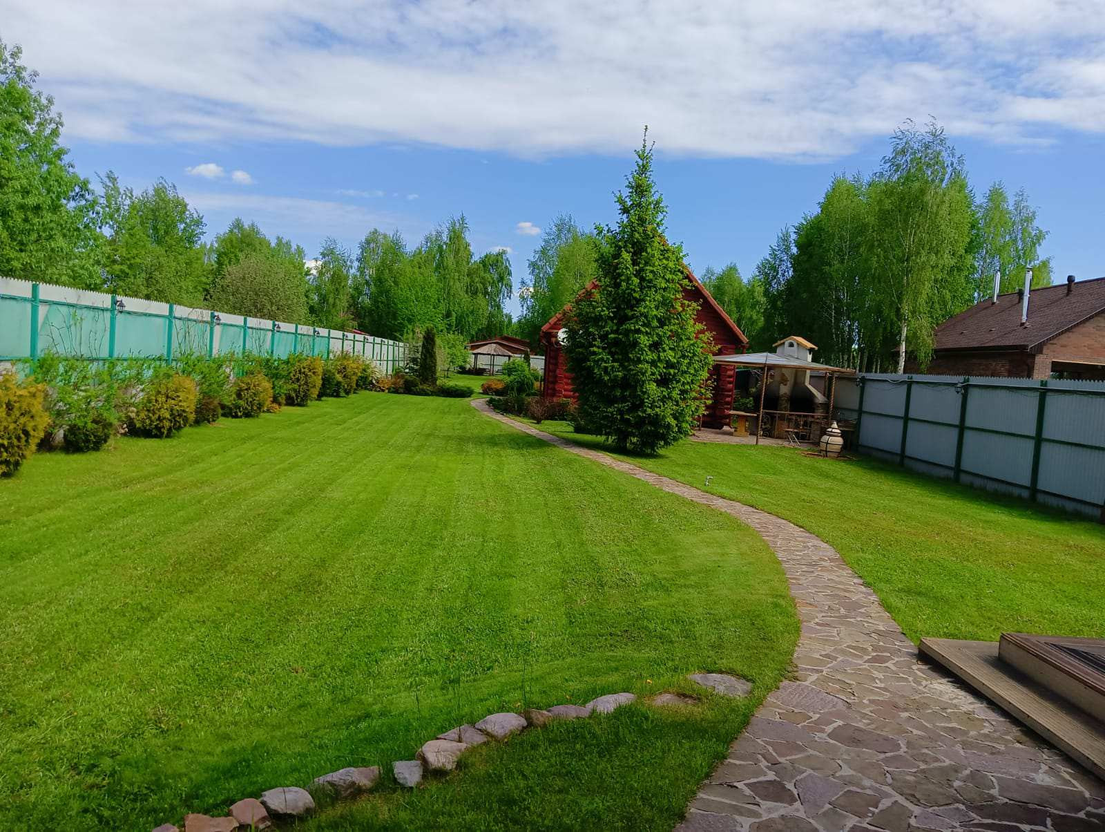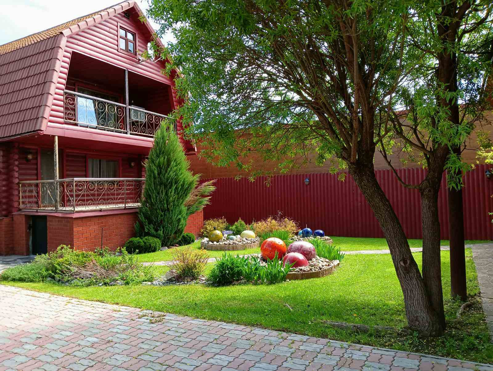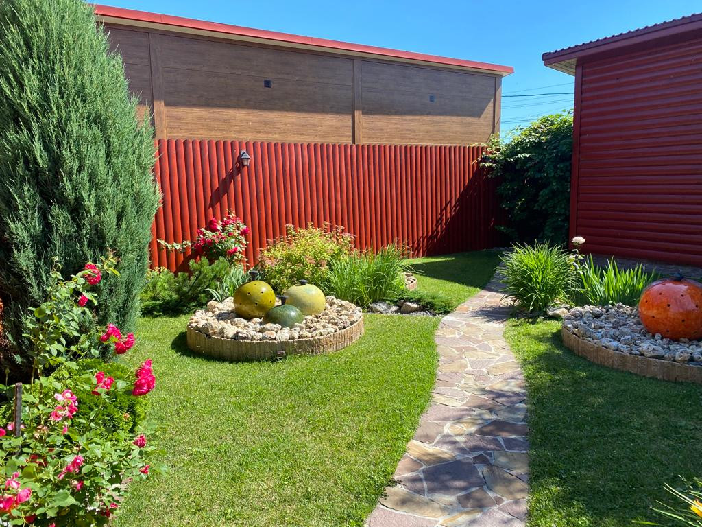 Прекрасный, ухоженный сад, с фонтанчиками, виноградником и прочими кустарниками.