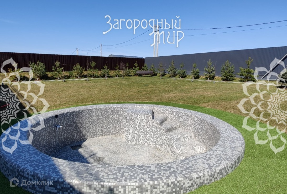 Участок 7,22 соток: выполнены ландшафтные работы, растут лесные деревья, газон. Выполнено мощение дорожек и парковочных мест натуральным камнем кварцитом, патио и бассейн обложены специально половой композитной доской.