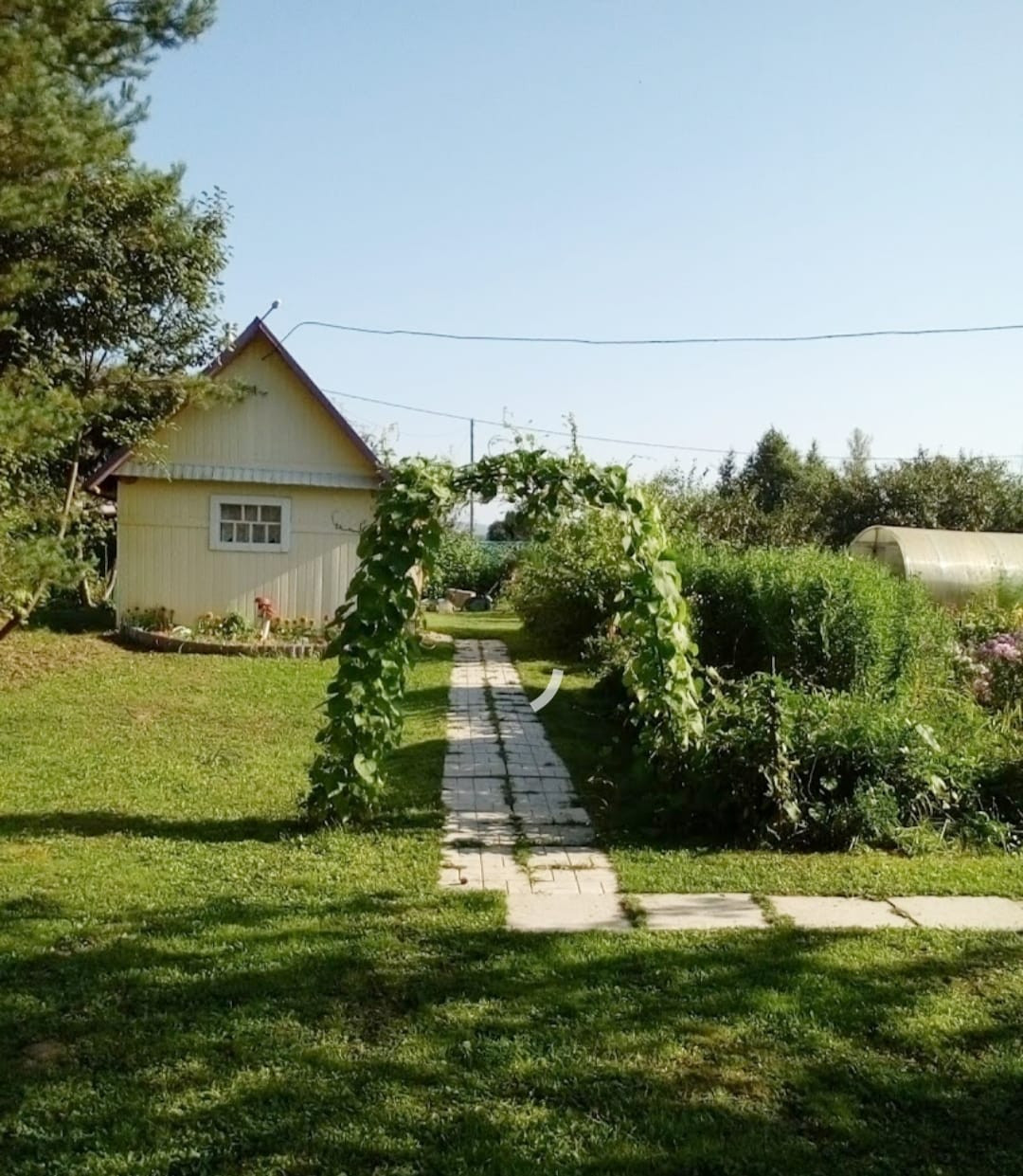 На участке баня, беседка, теплицы, насаждения.
