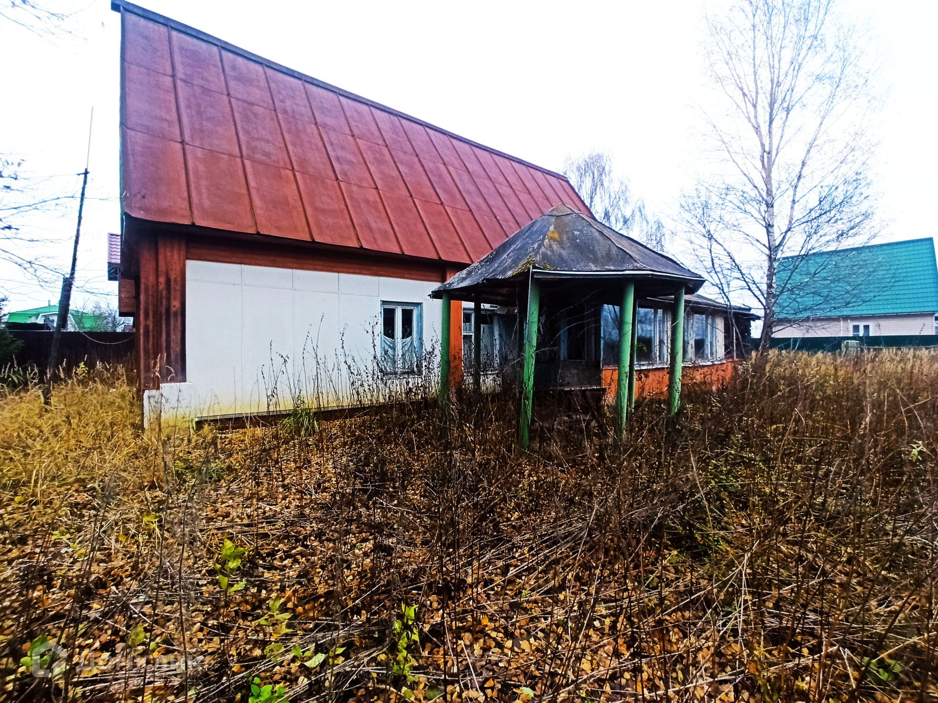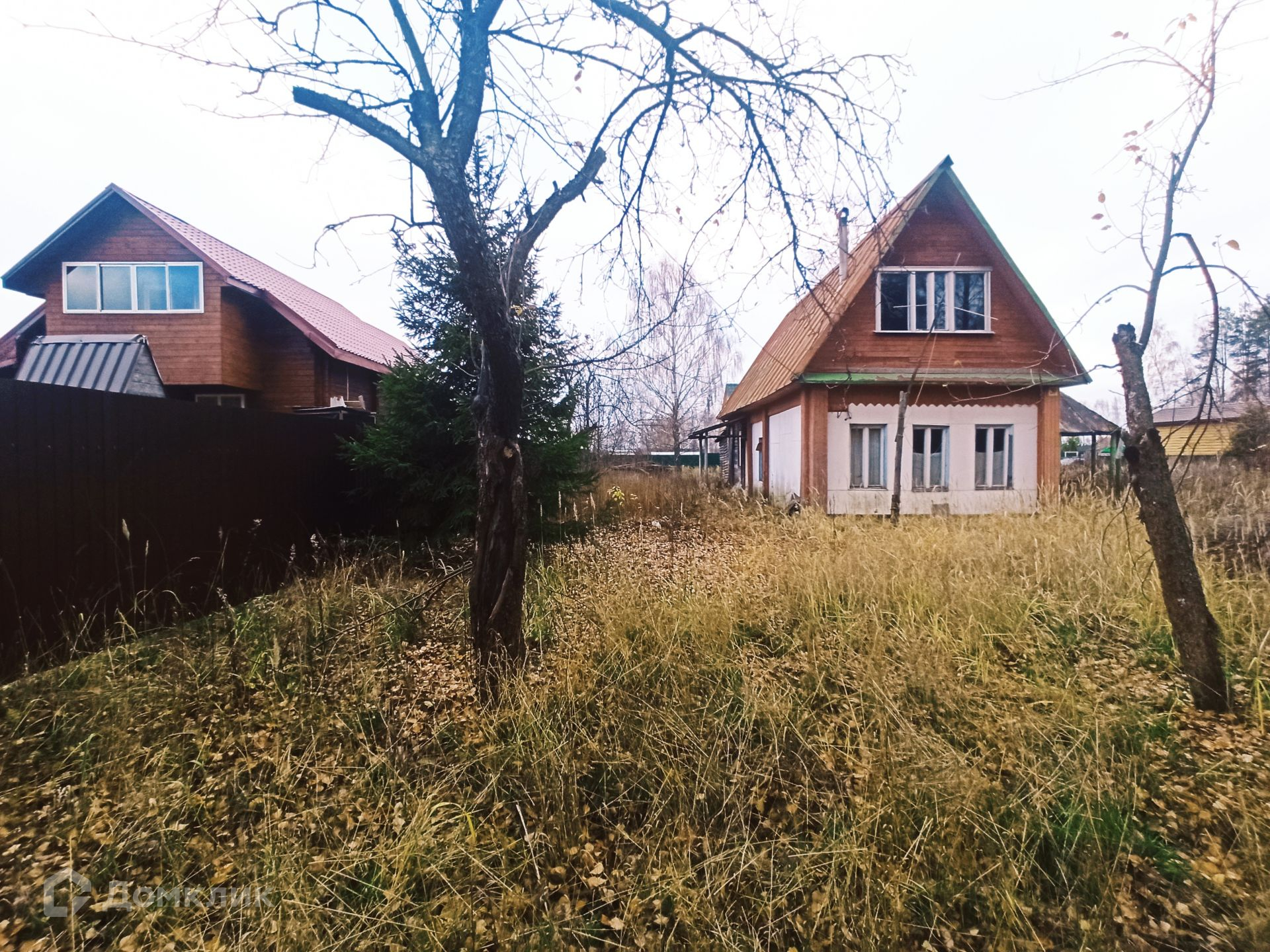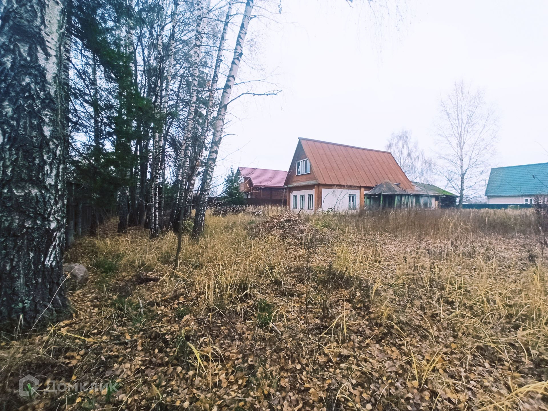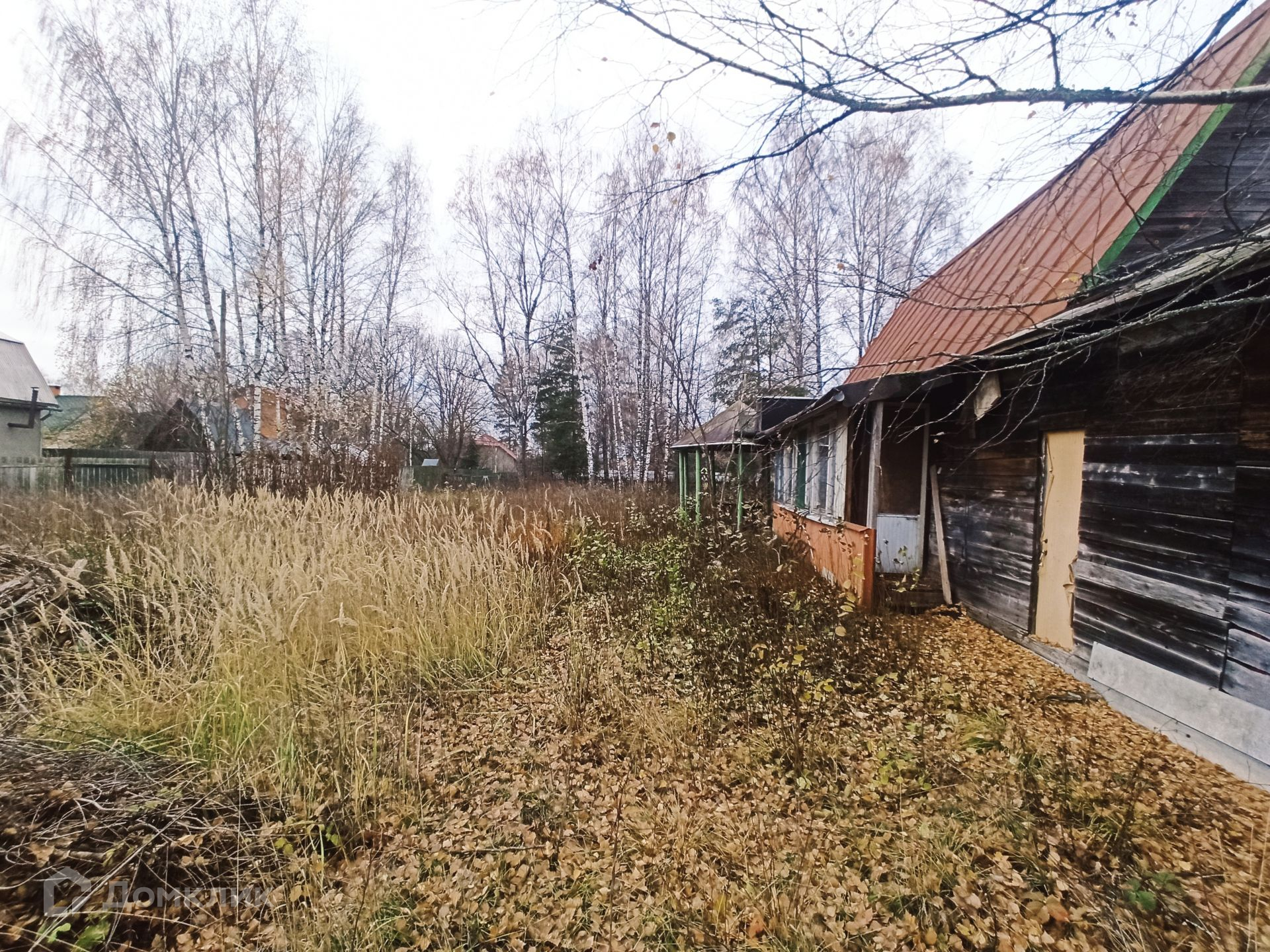 Дом из бревна, пятистенок, пригоден для проживания, в доме большая русская печь с лежанкой, две жилых комнаты, техническое помещение, кухня. К дому пристроена терраса, сзади большой хоз. блок с гаражом и туалетом. Фундамент дома ленточный, от земли до полов 70 см. К дому подведен свет, водопровод из собственной скважины, по границе участка газ.  В собственности более 30 лет.