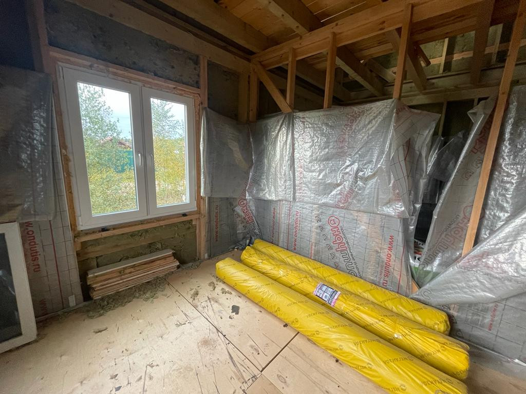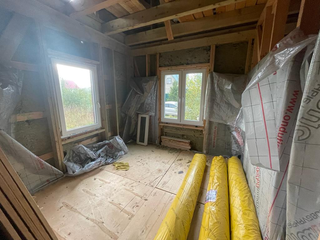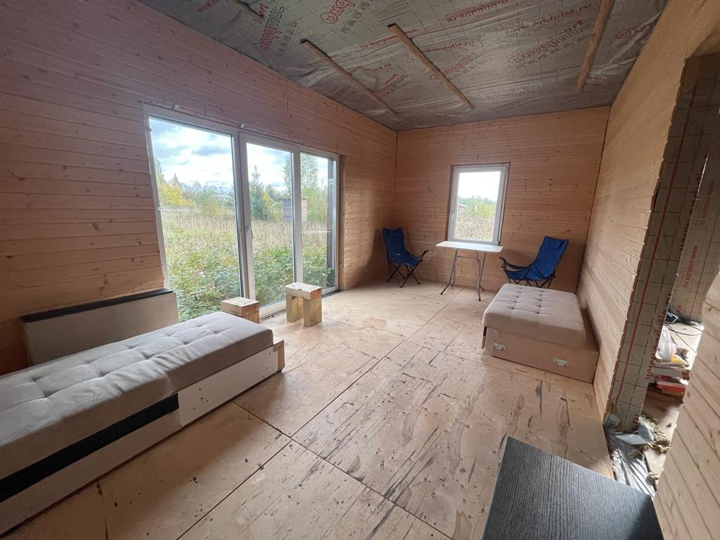 Дом 100кв.м. на участке 12 соток. Осталось сделать внутреннюю отделку и подвести коммуникации. В доме можно прописаться.
