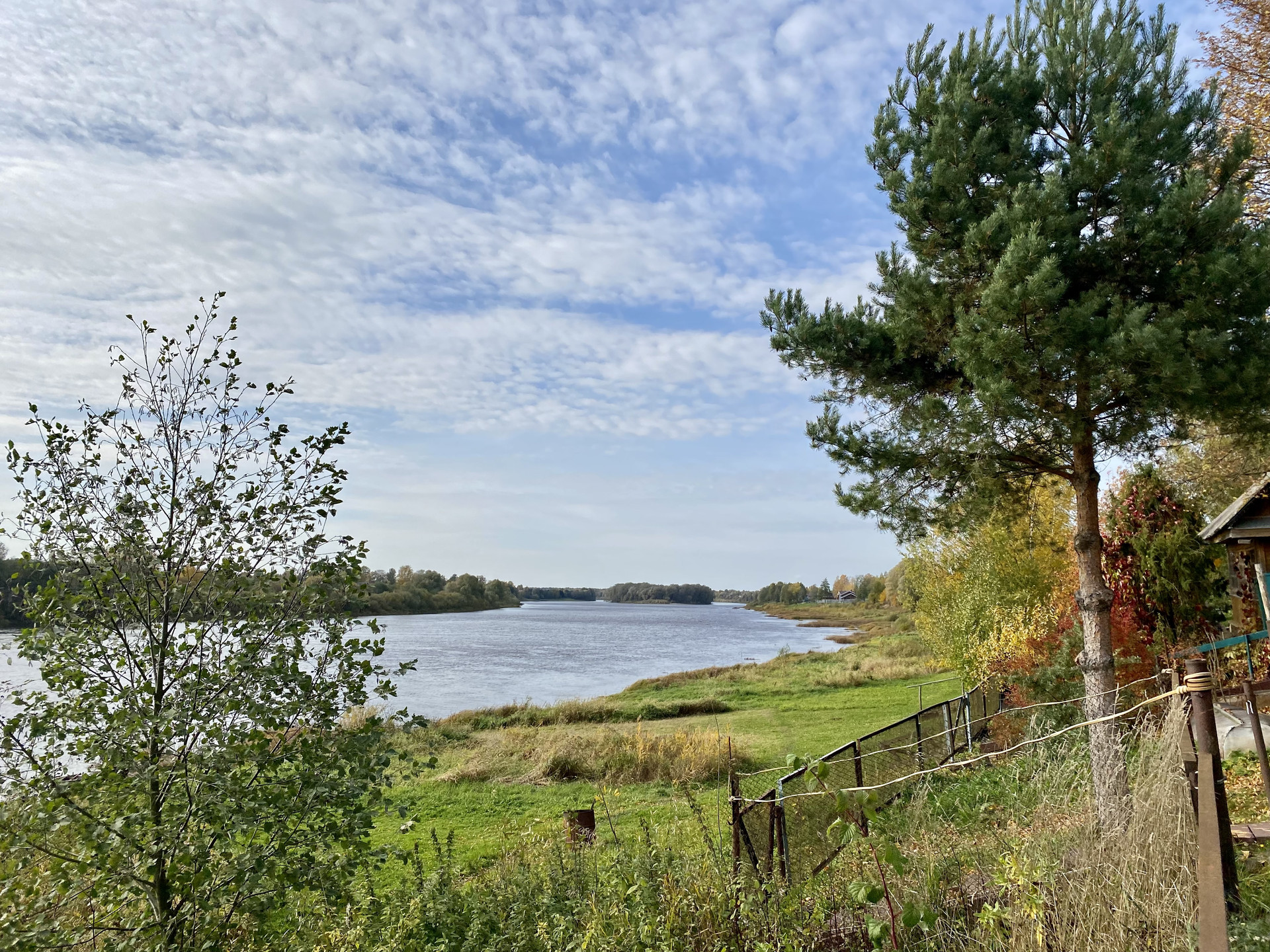 Автобусная остановка и река Мста в шаговой доступности.