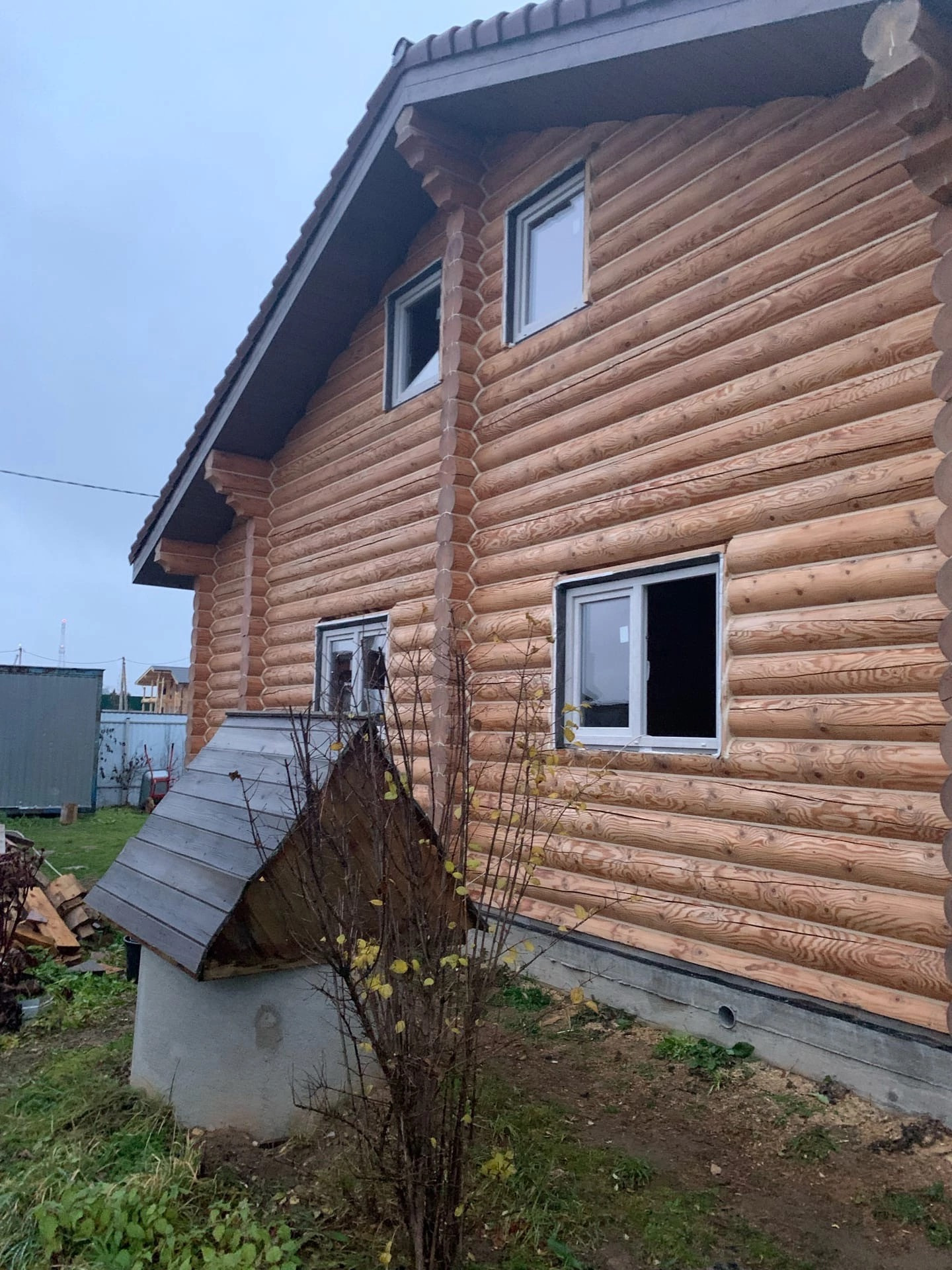 Дом из бруса, строили для себя. ГАЗ оплачен, колодец на участке. Вода не заведена в дом. Строительный вагончик и беседка на участке из дополнительных строений.
